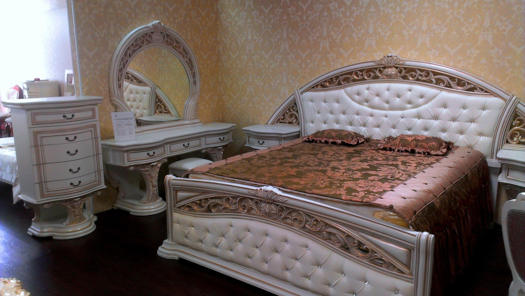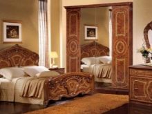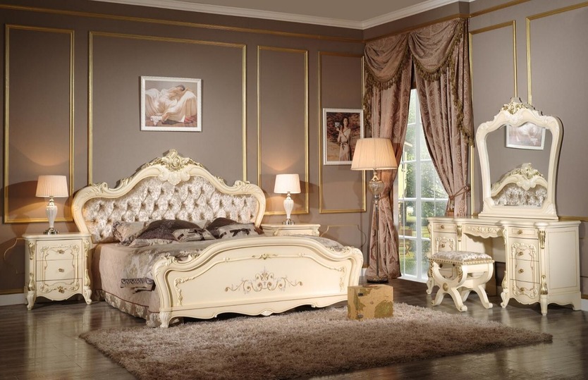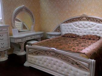 - "Daniella" - Schlafzimmerset vom chinesischen Hersteller "Avanti". Die sanft beige Farbe des Schlafzimmers wird harmonisch mit einem zurückhaltenden klassischen Finish aussehen. Die Suite selbst besteht aus einem doppelt gemusterten Bett, zwei Nachttischen und einem Schminktisch mit einem großen Spiegel, der in einem gemusterten Rahmen steht. Solche Möbel können die Individualität des Raumes unterstreichen und mit Komfort erfüllen.