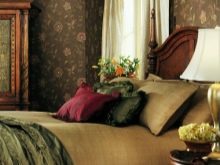 - Englische Klassiker sind ein Luxus und Eleganz, die einen diskreten und diskreten Stil haben. Sie können es nur in einem großen Raum benutzen, in einem kleinen Schlafzimmer gibt es einfach nirgends die Ideen der englischen Klassiker in die Realität umzusetzen.Der Raum sollte mit dekorativen Ornamenten aus Naturholz dekoriert sein. Wände, Fußleisten, Gardinenstangen und sogar Möbel sollten aus Mahagoni sein, das an sich die britischen Klassiker verkörpert. Das Farbschema besteht aus ruhigen und strengen Tönen. Wandverkleidung sollte eintönig sein, und Sie können es mit einem Bild in einem Holzrahmen dekorieren. Textildesign besteht aus schweren und dichten Stoffen, die mit Schnürsenkeln, Schnürsenkeln und Vorhängen verziert werden müssen.