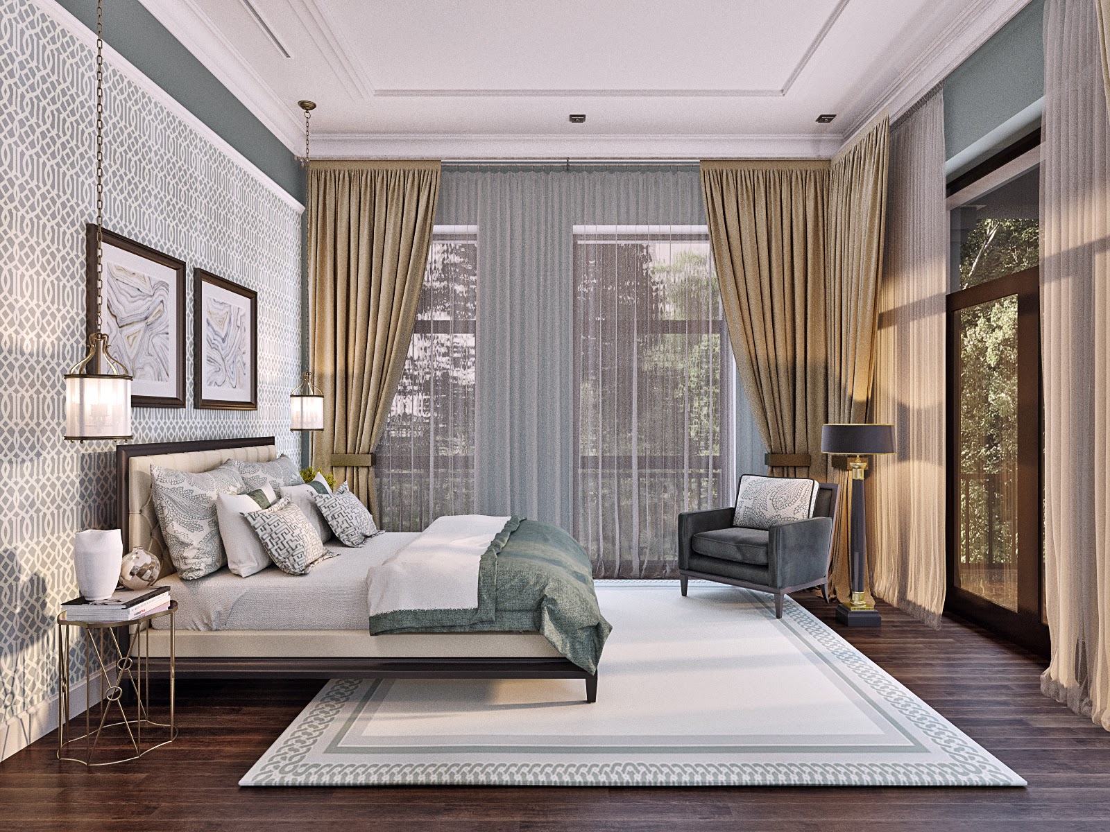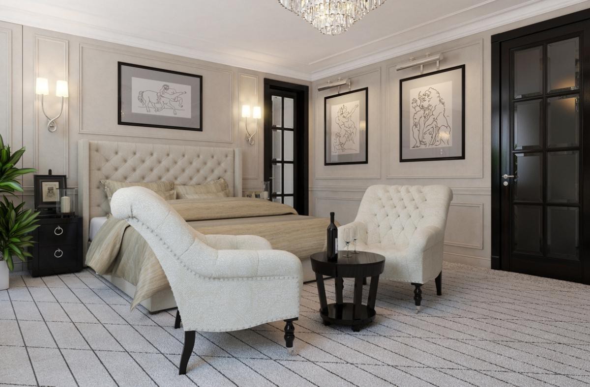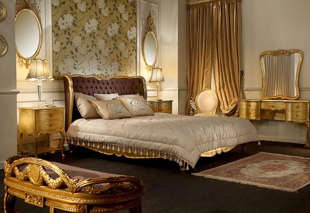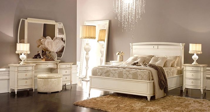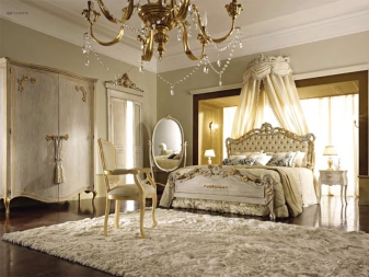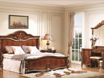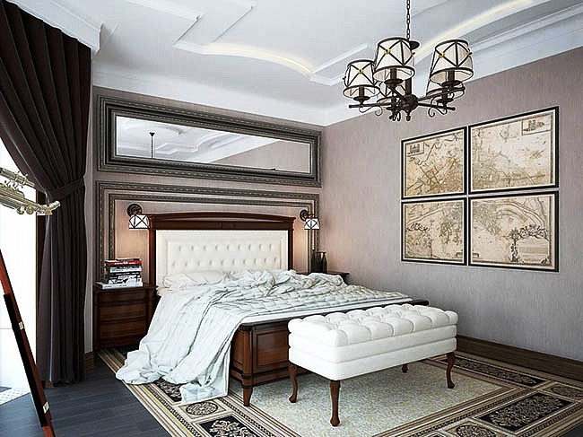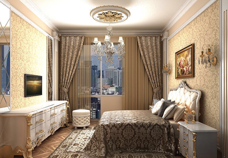 Classic ist vor allem eine große Anzahl von beeindruckenden Elementen, die in einem großen Raum platziert werden sollten. Das Innere des Schlafzimmers sollte ziemlich originell sein, aber nicht mit einer großen Anzahl von Accessoires überfüllt sein.