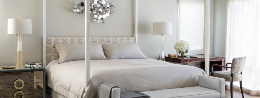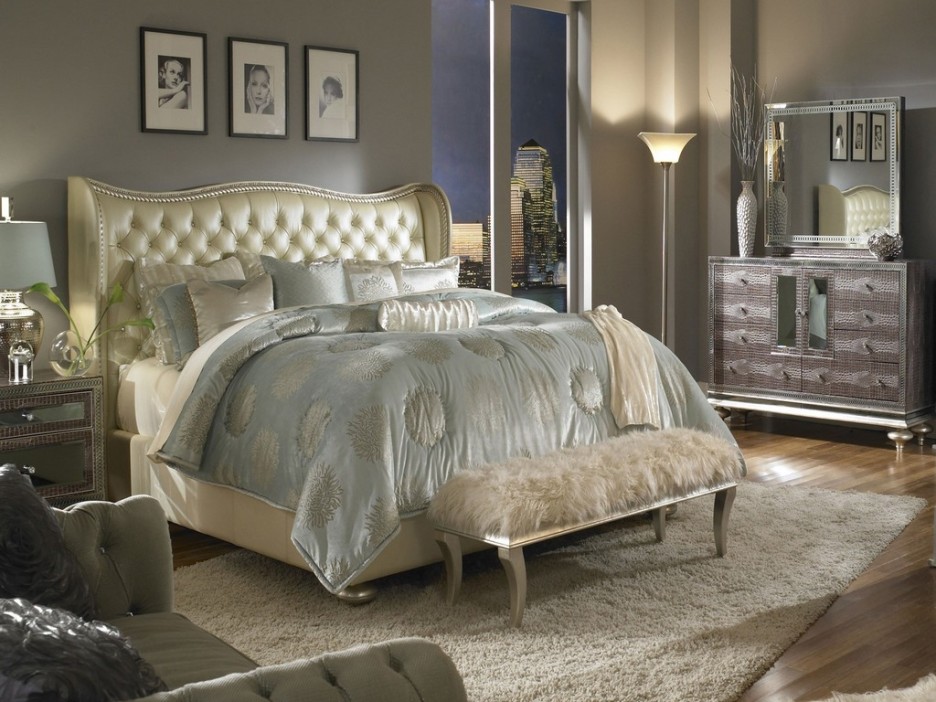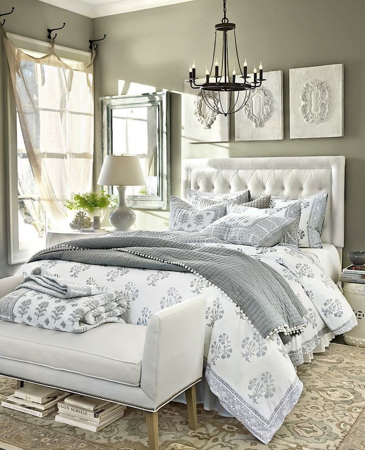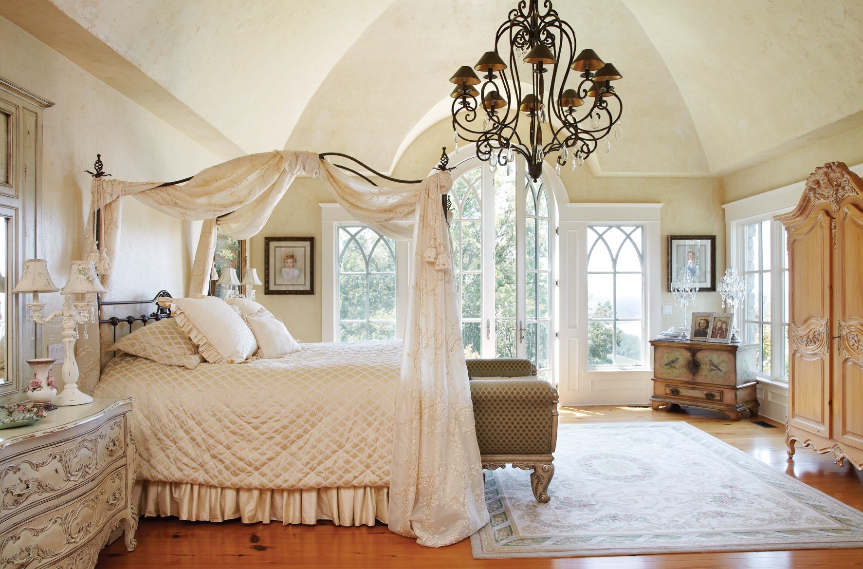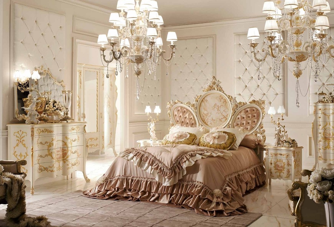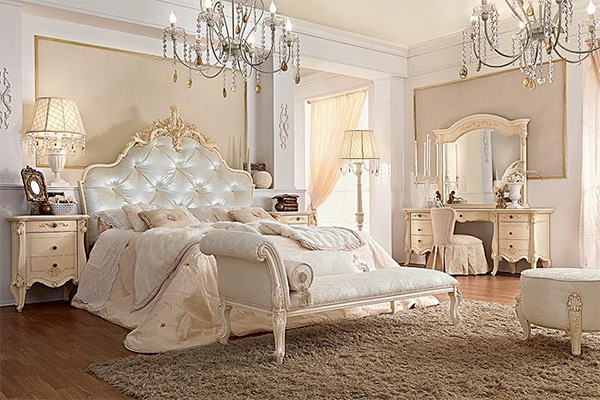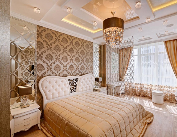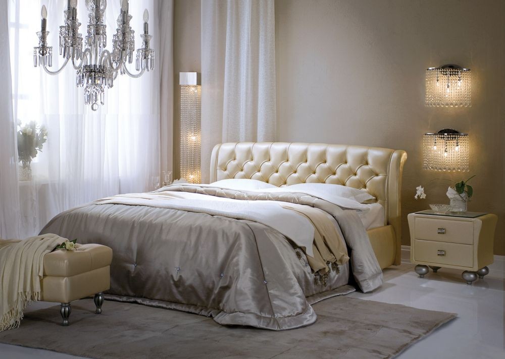 Dekorieren Sie das Schlafzimmer kann ein Kristall-Kronleuchter, Glas oder schmiedeeisernen Kerzenhalter, ein großer Spiegel sein.