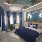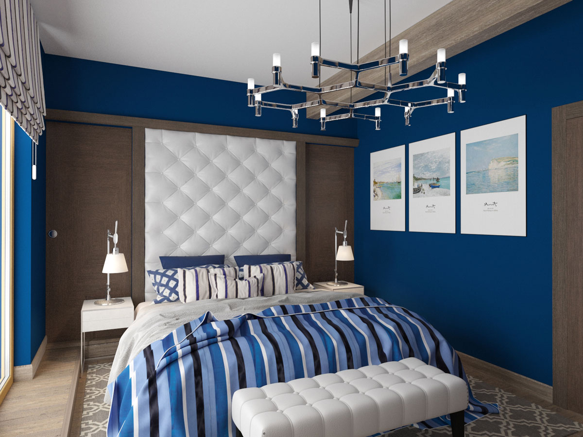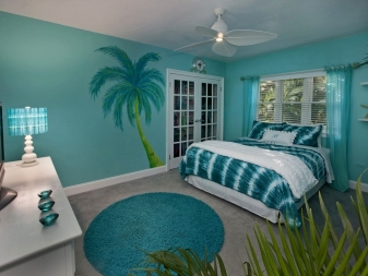 - Keine Notwendigkeit, blaue Farbe zu verwenden zum Malen von Wänden. Dieser Ton ist nur in Kombination auf Teppichen, Möbeln, Decken möglich, ansonsten ist der Raum zu dunkel;