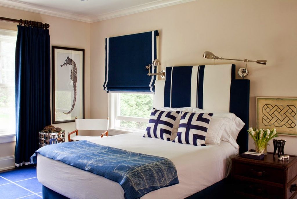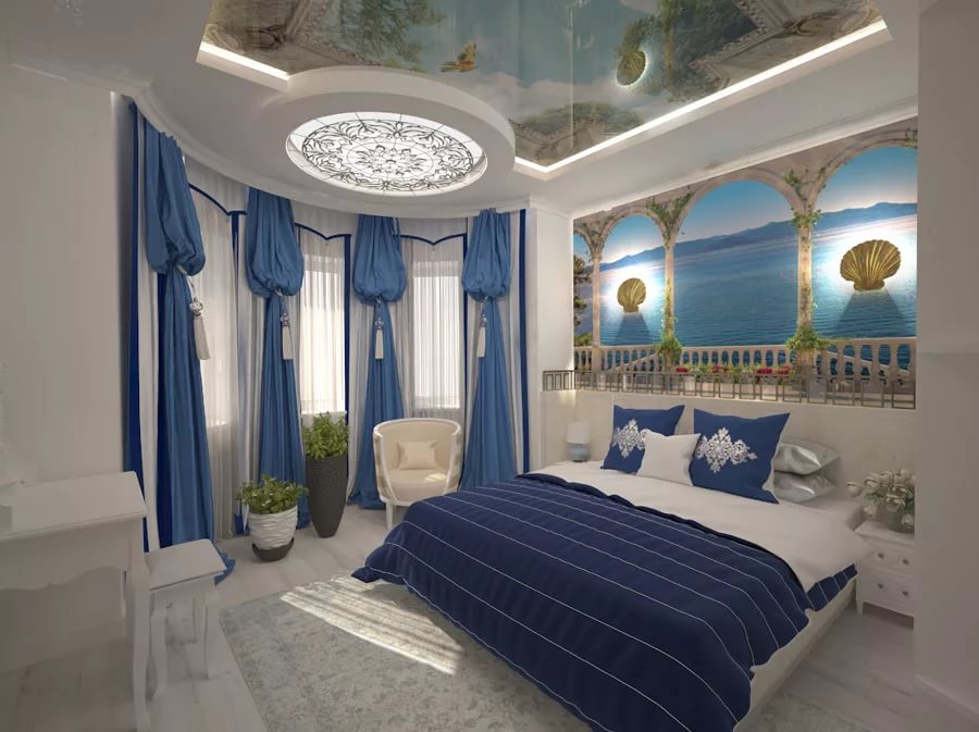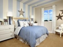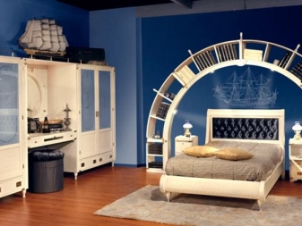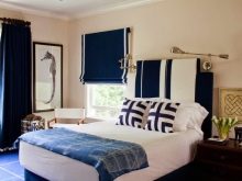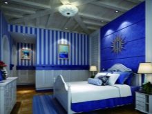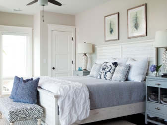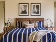 Oft wird der marine Stil mit anderen kombiniert, so dass Sie beim Modellieren eines Schlafzimmers auf die Merkmale der Dekoration achten müssen. Es ist möglich, es mit anderen zu kombinieren, aber nur dann, wenn alle Regeln zur harmonischen Kombination von Innenobjekten strikt befolgt werden. In diesem Fall wird ein atemberaubender Effekt erzeugt.