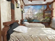 - Möbel aus Holz im Alter, resistent und insgesamt, werden effektiv hervortreten. Eine Kastentruhe, ein Ankerrahmen, ein Barometer in Form eines Schiffslenkrads, eine Kette, eine Landkarte, Kissen in Form von Fischen, eine Vase mit Sand oder Kieselsteinen, Meeresschätze und Steine können als Zubehör dienen. Eine ideale Ergänzung wäre die Lage von Strandpantoffeln oder einem Badeanzug an der Wand.