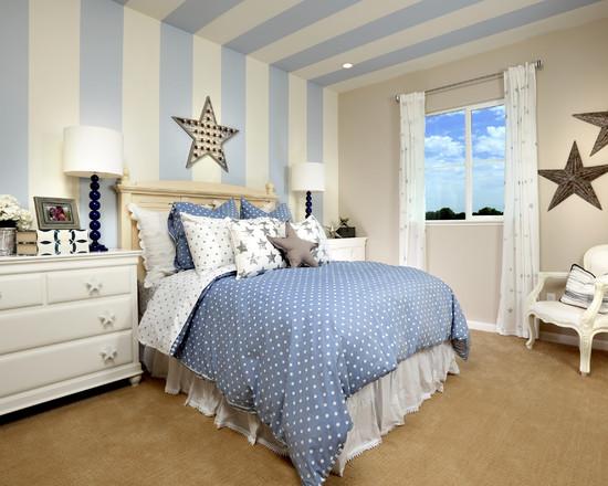 Am besten in diesem Stil aussehen Schlafzimmer, Bad und Kinderzimmer.
