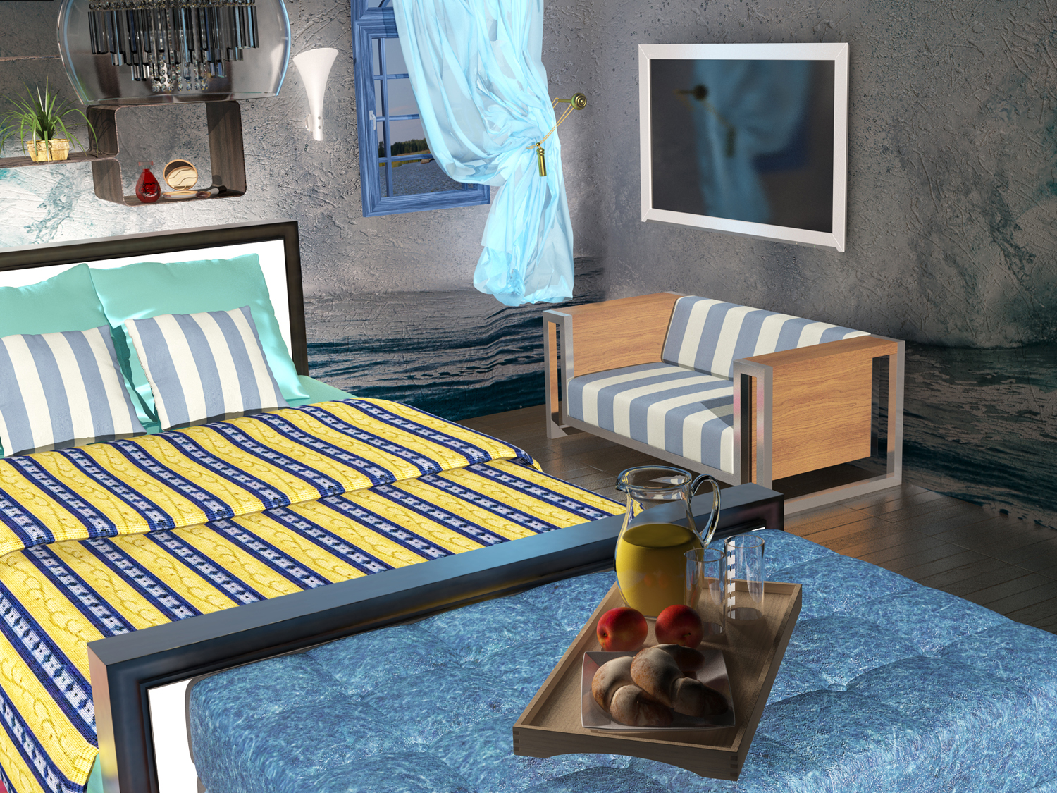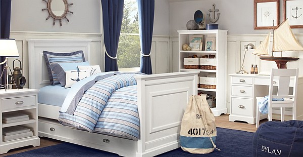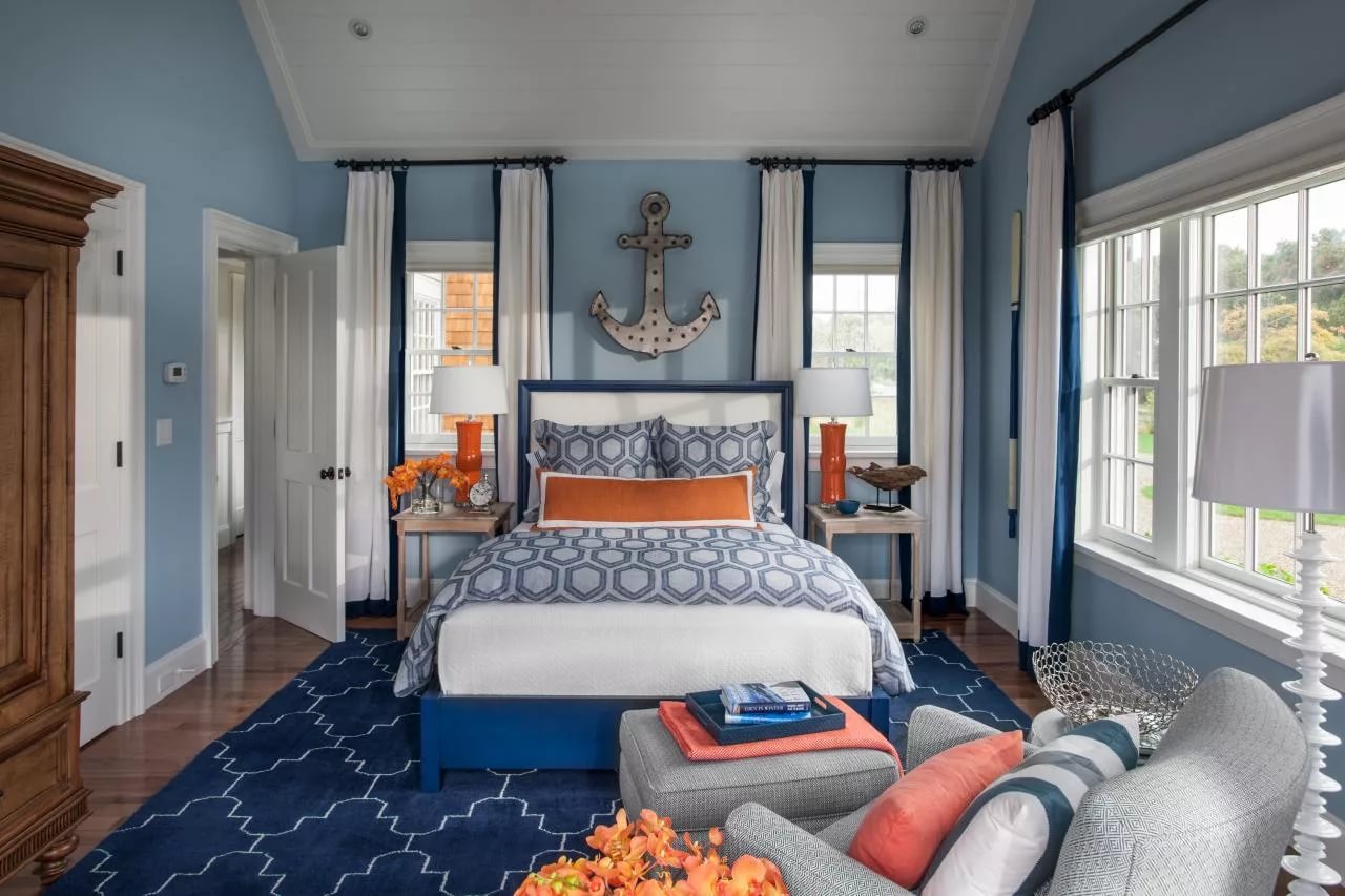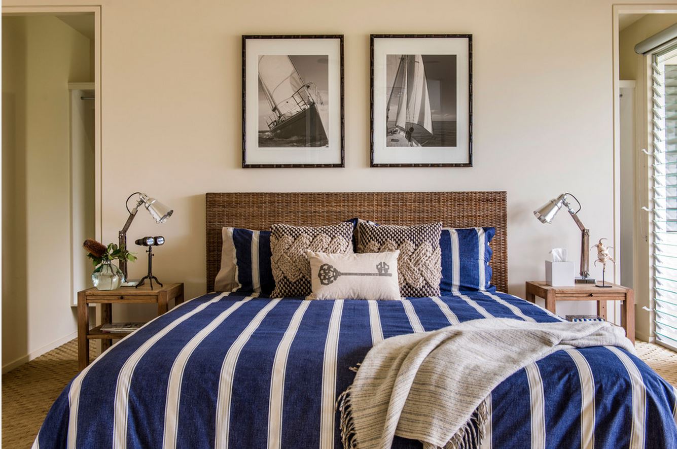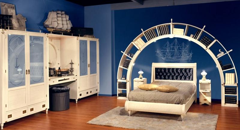 Marine Stimmung verkörpert das folgende Schlafzimmer Interieur - siehe Video-Review.