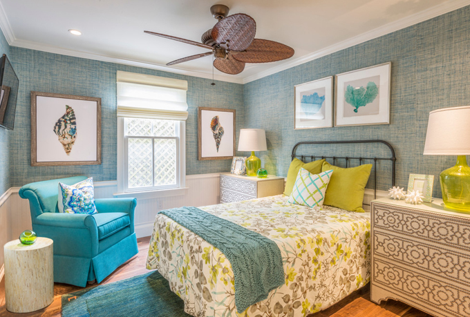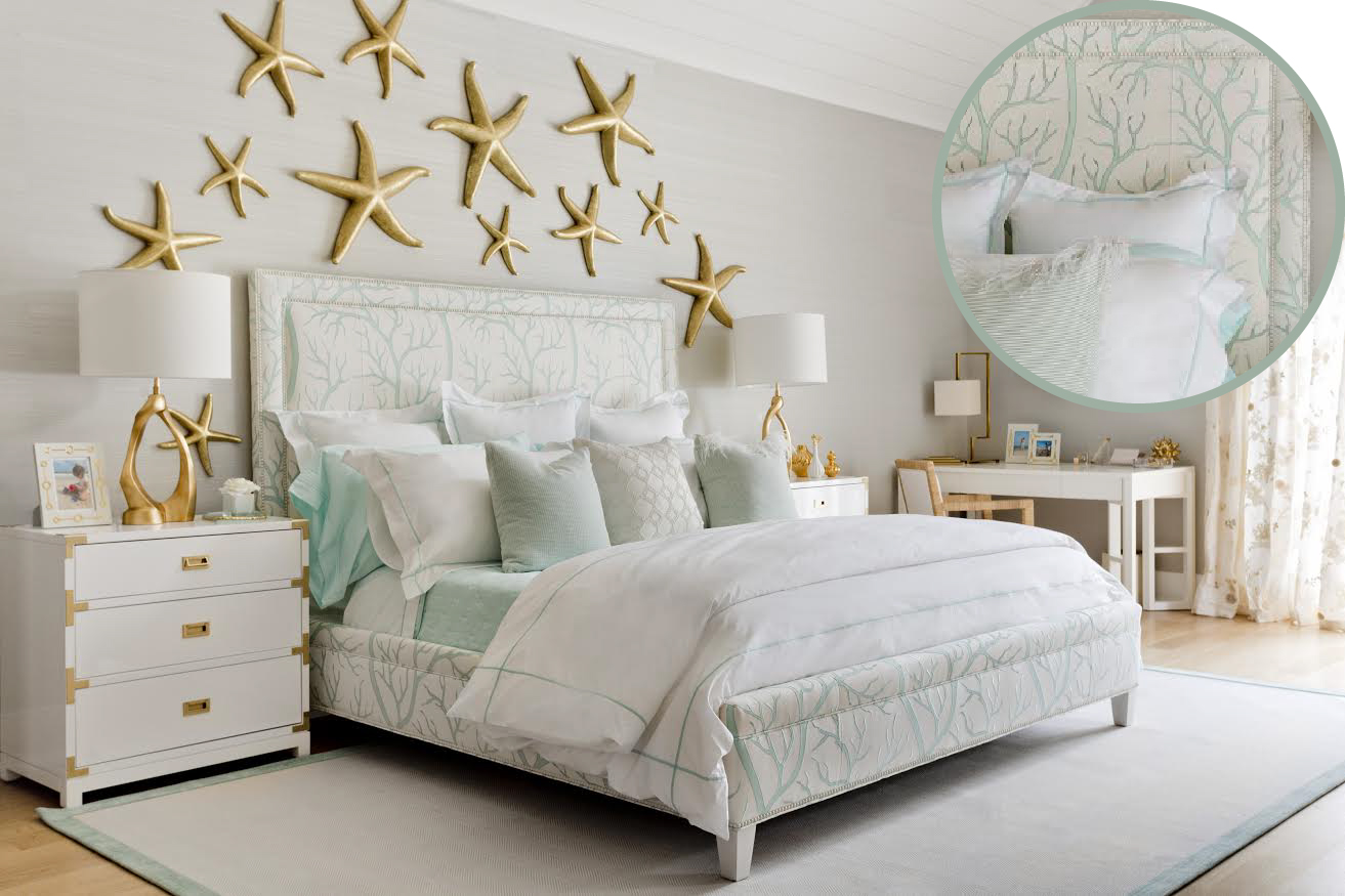 Bei der Gestaltung des Schlafzimmers ist am besten zu wählen, vor allem in den Farben Türkis und Smaragd als Materialien und Dekorelemente.