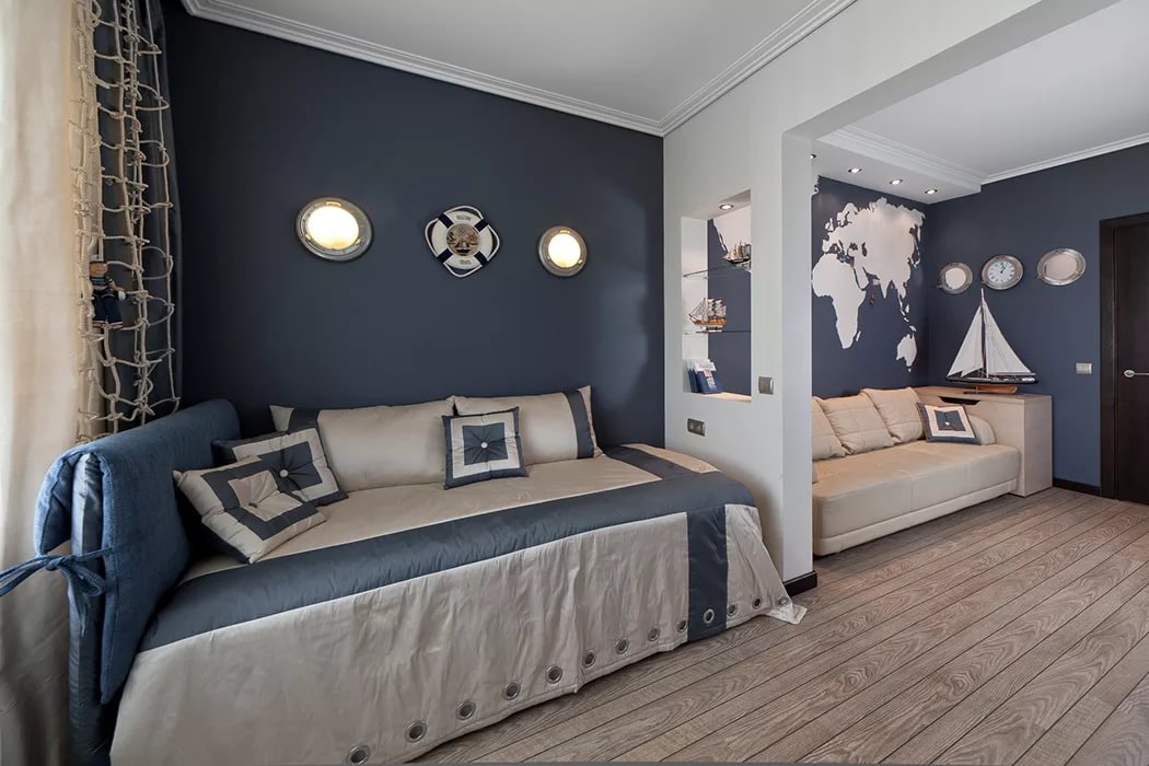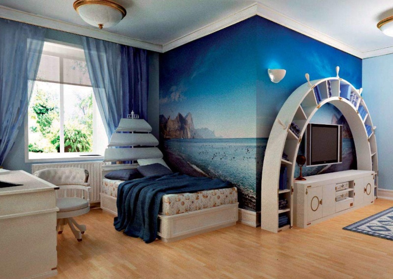 Derzeit, wenn Sie eine Wohnung entwerfen, versuchen viele, ein einzigartiges Design zu wählen. Und das Meeresbild ist einer der ungewöhnlichen Einrichtungsstile und schafft gleichzeitig Komfort in dem gewählten Raum. Gleichzeitig wird der Raum natürlich und interessant aussehen. Die Meereskomposition füllt den Raum mit frischer Brise und warmer Stimmung. Überraschenderweise ist die Darstellung einer solchen Situation überhaupt nicht schwierig, da die Designprinzipien offensichtlich und wenig sind.