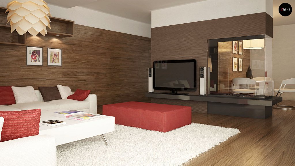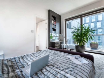Damit das Design zu 100% erfolgreich ist, sollten die Trennwand und die Wände mit neutralen, neutralen Farben dekoriert werden. Wie bereits erwähnt, sind helle Farben Akzente. Dies können Kissen, Lampen, Rahmen und so weiter sein. Vor dem Hintergrund der Hauptpalette werden Farbflecken besonders bunt aussehen.