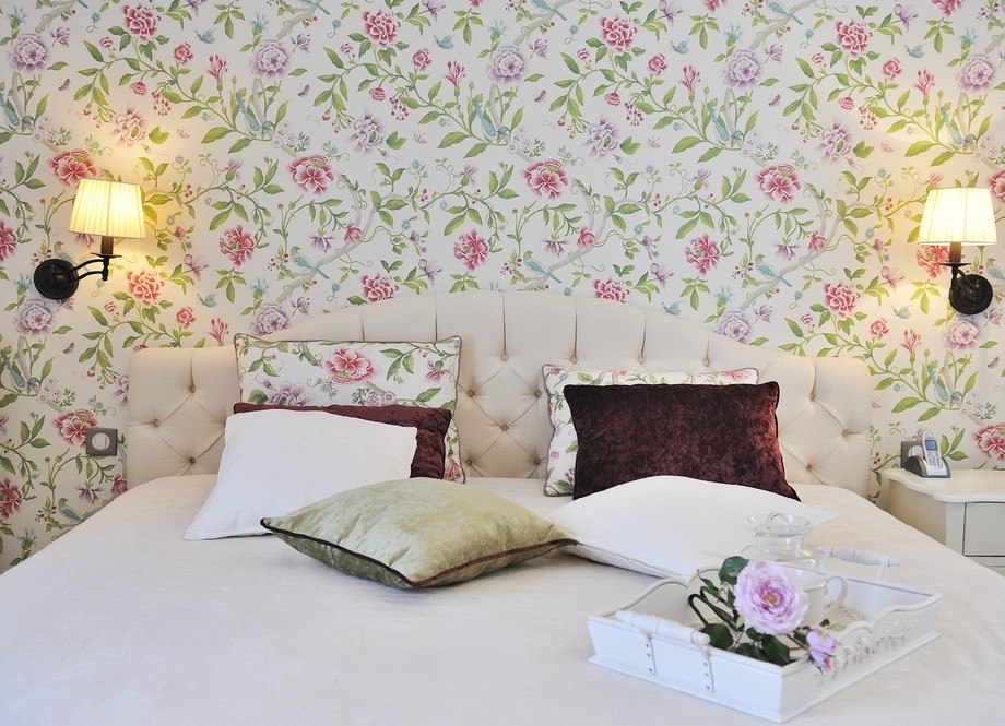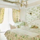Dieser Stil zeichnet sich durch die Verwendung von lebendigen und künstlichen Farben aus. Sie können als Zubehör dienen und als Druck auf der Tapete dienen. Tulpen symbolisieren Wohlbefinden. Flieder - Zärtlichkeit und Reinheit. Pfingstrose, symbolisiert Leidenschaft und Loyalität, geeignet für Eheschlafzimmer. Lilien erinnern an Frieden und Auserwähltheit.