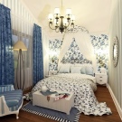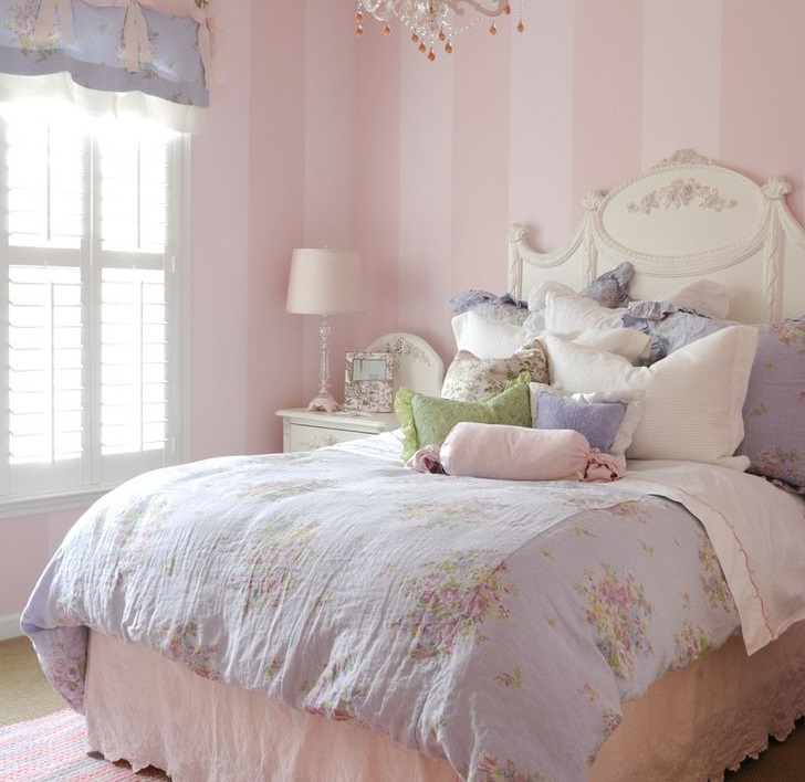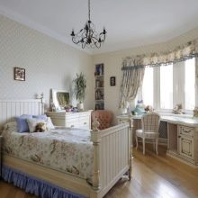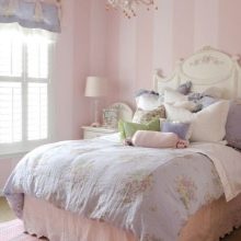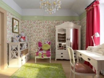 Wegen der Fülle an Blumen und zarten Mustern wird diese Option eher von Mädchen als von Jungen bevorzugt. Romantische Stimmung des Raumes, eine Fülle von Kissen und Halskrausen werden viele ansprechen.