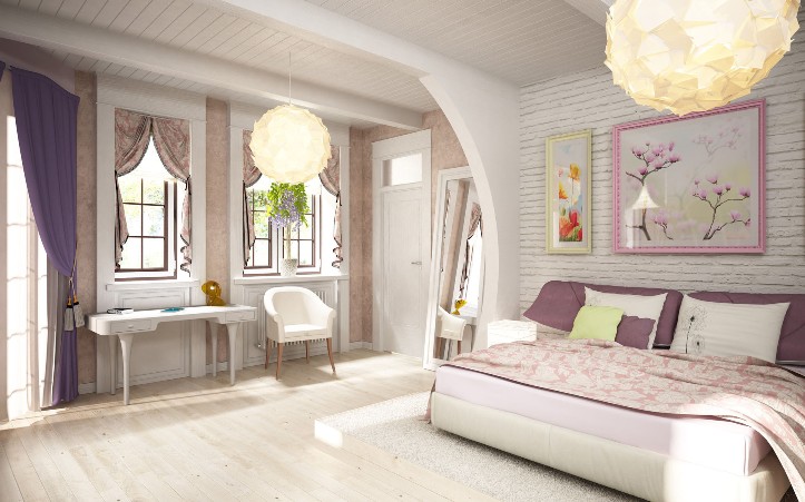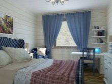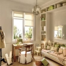 Da solche Schlafzimmer hell und geräumig sind, können sie nicht nur als Schlafplatz, sondern auch als Jugendzimmer dienen, in dem es einfach und angenehm ist, Hausaufgaben zu machen.
