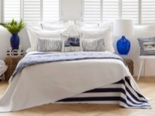 Das Beste von allem, wenn die Bettwäsche weiß oder in einem anderen Farbton, aber monophone kochen wird. Es ist akzeptabel, einen Blumendruck zu verwenden, aber es sollte nicht zu viel sein, damit es nicht in den Augen zerzaust. Sie können dieses Muster auf Kissen, Tagesdecken oder Polsterung andere Polstermöbel verwenden.
