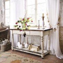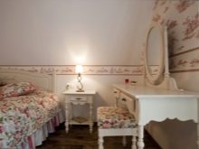 Bei der Wahl eines Schreibtisches für das Schlafzimmer a la "Provence" ist es wichtig, dass es nicht zu modern aussieht. Gegenwärtig versuchen Möbelfabriken sich gegenseitig zu übertreffen, indem sie zunehmend sperrige Tische mit einer Reihe von Schubladen und Regalen freigeben. Diese Option wird nicht funktionieren. Der Nachteil hier ist, dass der Arbeitsplatz klein sein wird und nicht jeder damit zufrieden ist.
