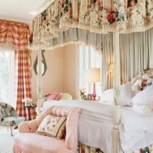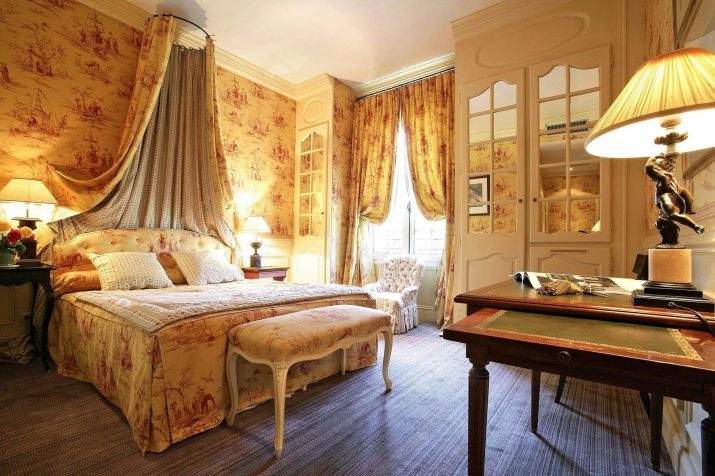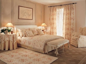 Eine wichtige Rolle bei der Gestaltung des Raumes spielen Textilien. Solche Stoffe wie Tapisserie, Chintz sind sowohl bei der Gestaltung von Möbeln als auch bei der Gestaltung der Wände beteiligt.