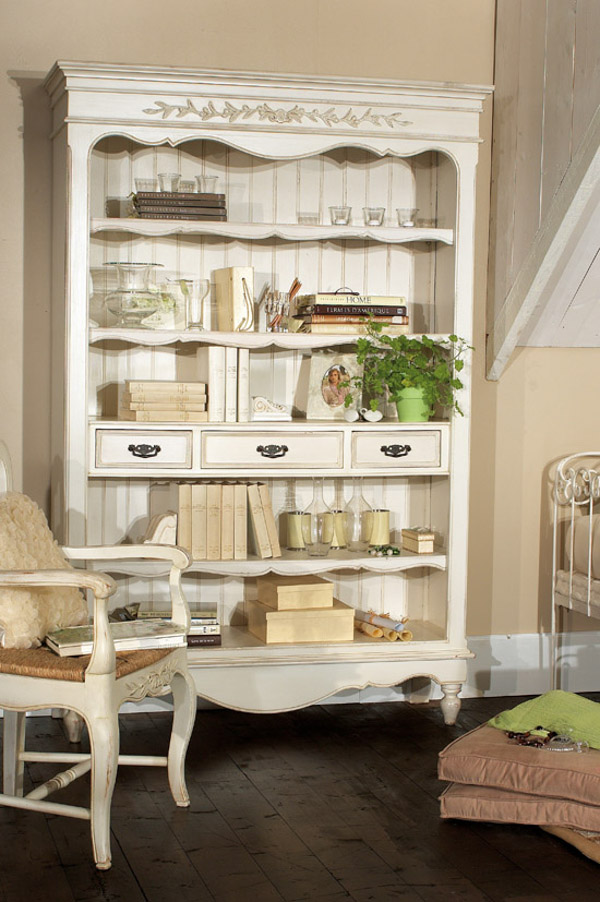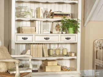 Eine gute Idee wäre, offene und geschlossene Speichersysteme zu verwenden. In einem geschlossenen Bereich sind Dinge, die nicht für neugierige Augen bestimmt sind. Und für alle zu sehen, können Sie Dekorelemente, Bücher oder andere Dinge, die einen schnellen Zugriff benötigen, einrichten. Im provenzalischen Interieur werden Porzellanteller, Figuren und bemalte Blumenvasen gut aussehen. Es lohnt sich, hochwertige Produkte mit neutralen Motiven und Farben zu wählen.