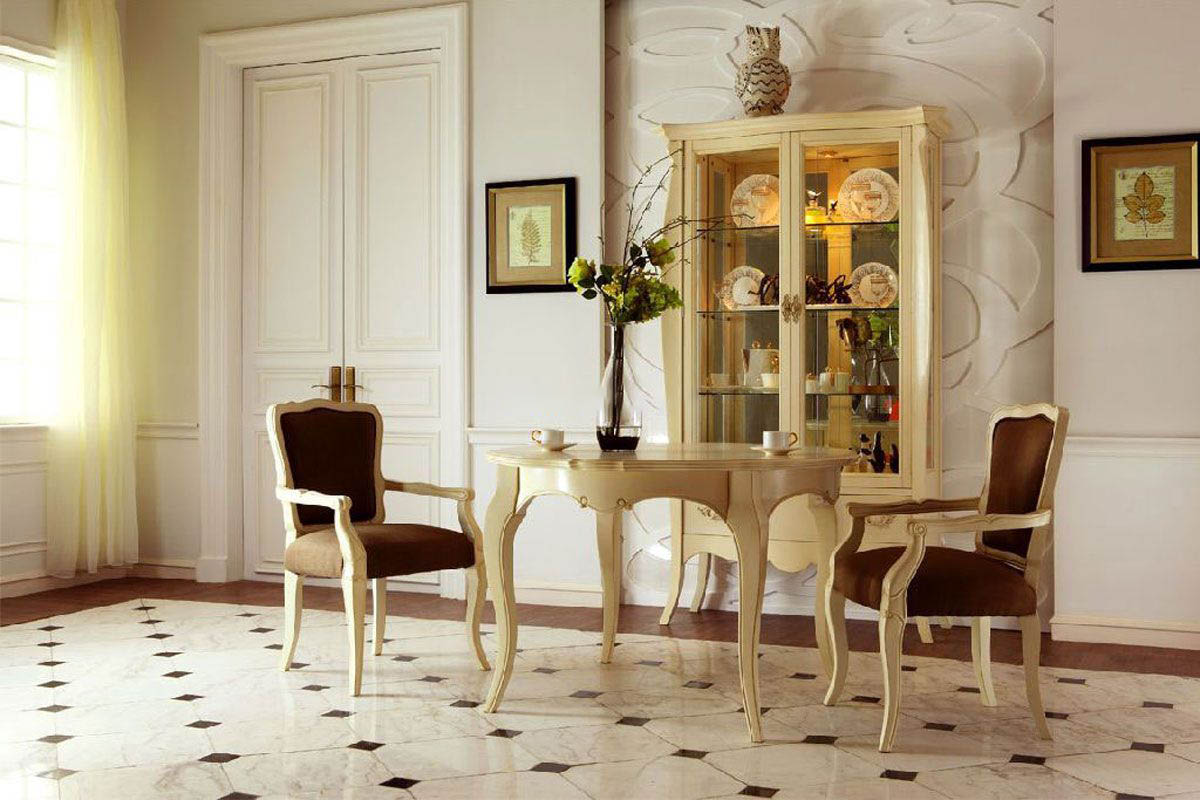 Die Umrisse von Objekten sind in der Regel einfach und geometrisch. Zimmer in diesem Stil können reich mit Stuck, Schnitzerei, viele dekorative Elemente, Porzellan und Vergoldung verziert werden. Dies liegt daran, dass zunächst die Gesetzgeber des klassischen Stils reich waren. In modernen Häusern ist die Situation etwas anders.