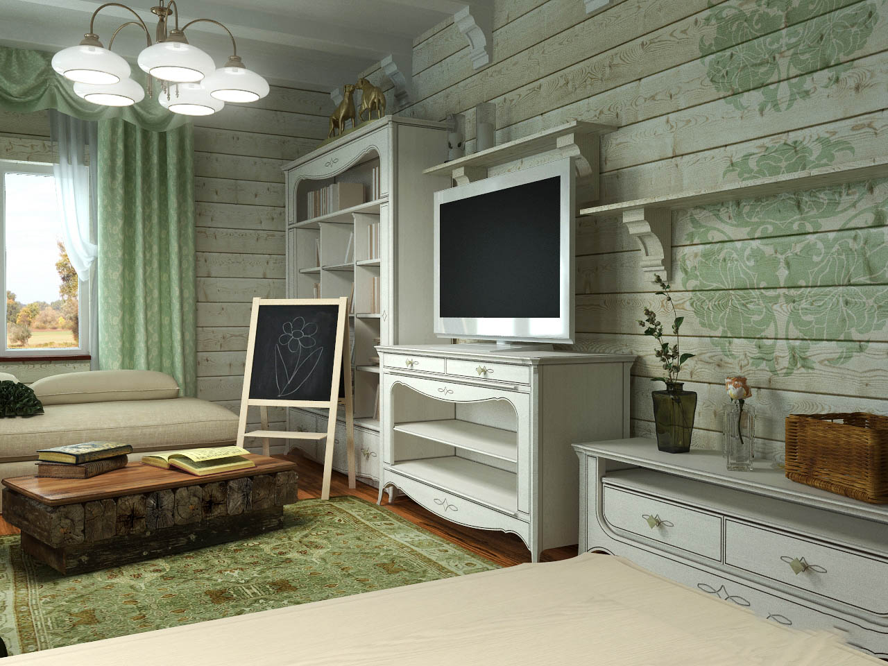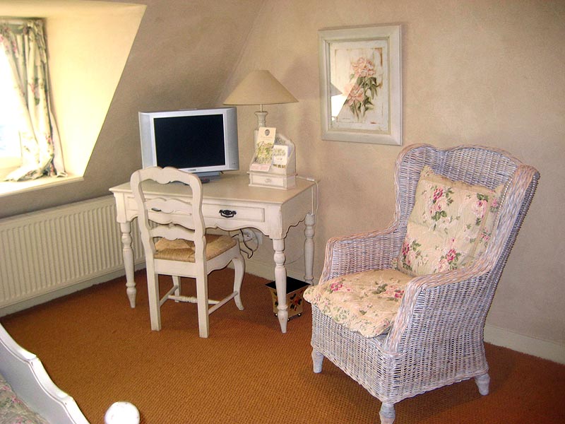 Durch das große Fenster im Raum viel Licht, wie es sich für ein Zimmer im Stil der "Provence" gehört.