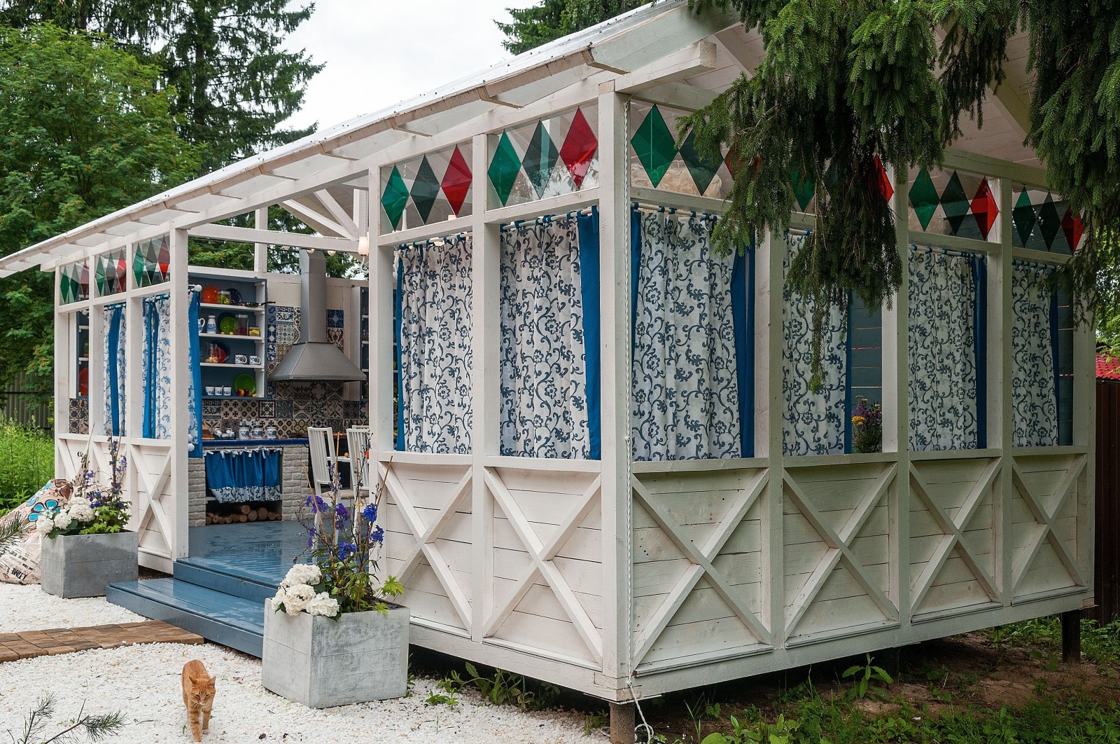 Dieser Stil zeichnet sich durch eine Fülle von Licht, die Verwendung natürlicher Materialien und antiker Dekorelemente aus. Geschmiedete Möbel und Textilien mit einem unaufdringlichen Blumenmuster sind weit verbreitet.