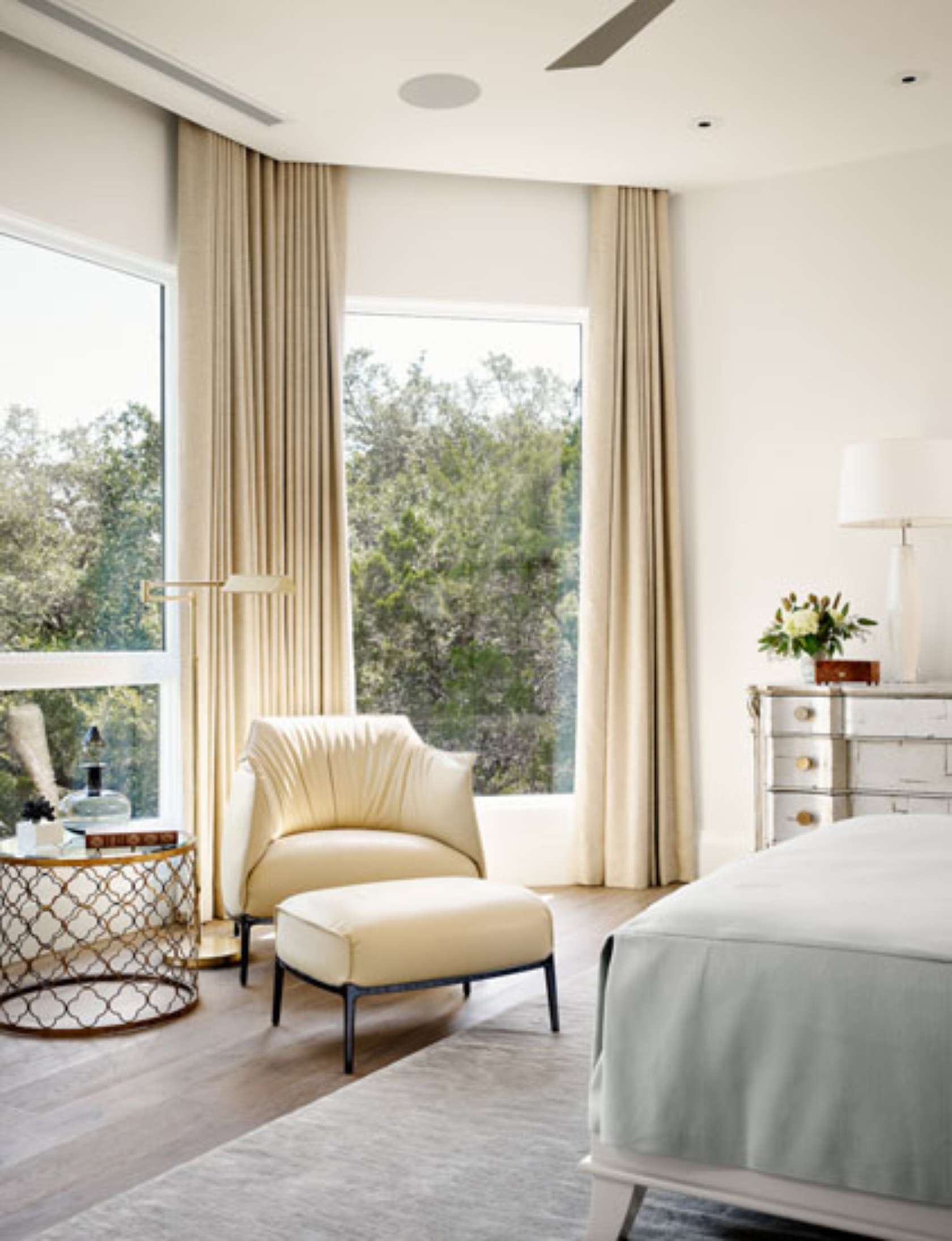 Die Hauptrolle in der Gestaltung des Schlafzimmers sind Textilien. Er bindet alle Möbelstücke zusammen.