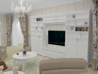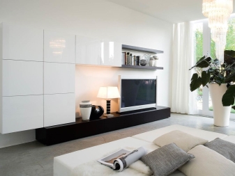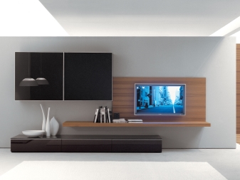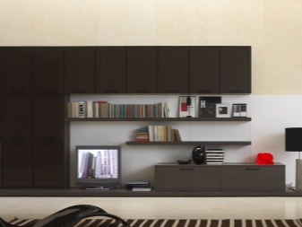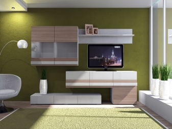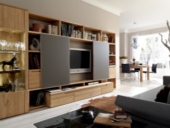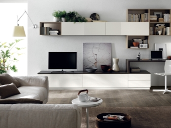 - hohe Funktionalität - die Module dieser Wände können mit zusätzlichen Funktionen umgewandelt werden. Die Schränke sind mit Schwenkbereichen, Elementen auf Rädern und anderen Mechanismen ausgestattet, die den Gebrauch so einfach wie möglich machen. In Regalen können Sie die Position einstellen, einschließlich des Neigungswinkels, der Breite und Höhe;
