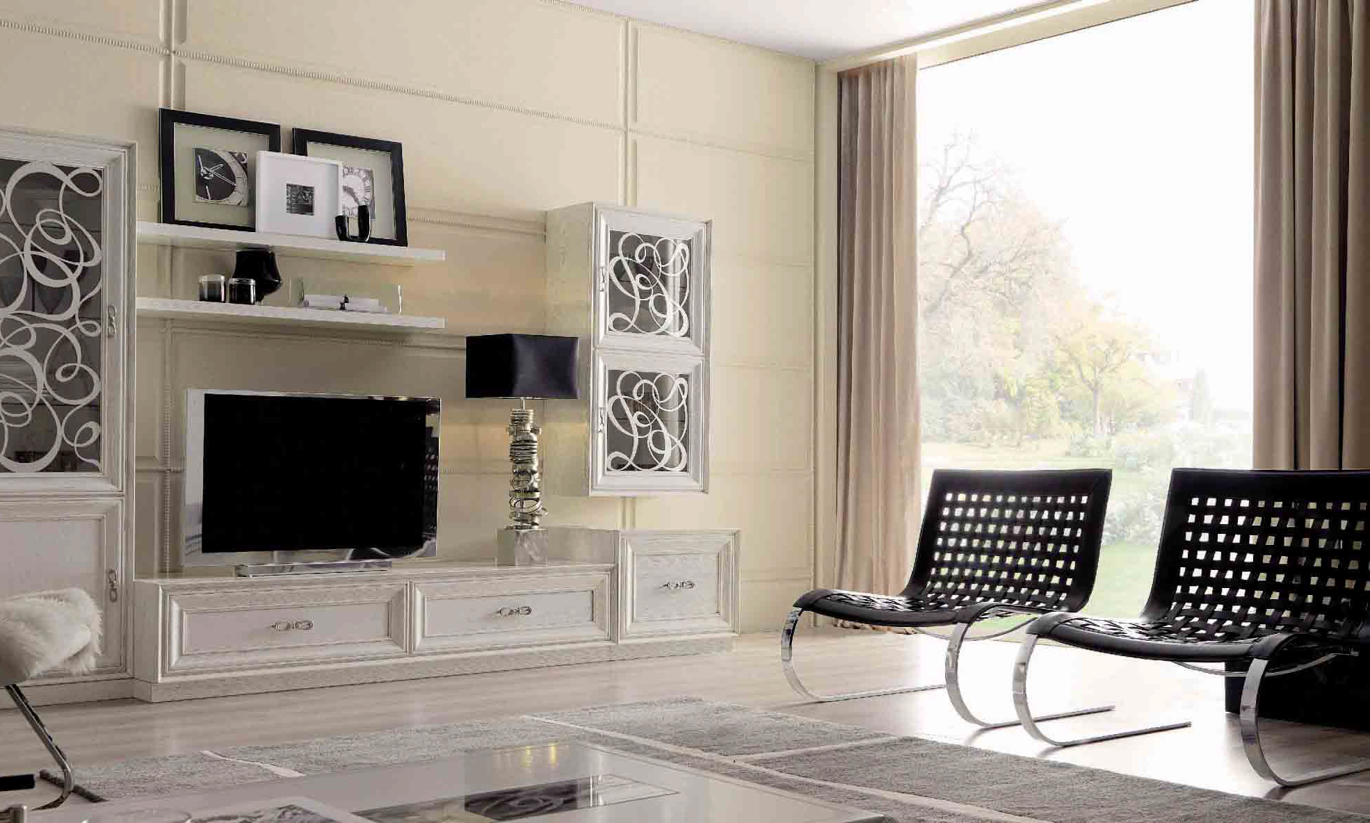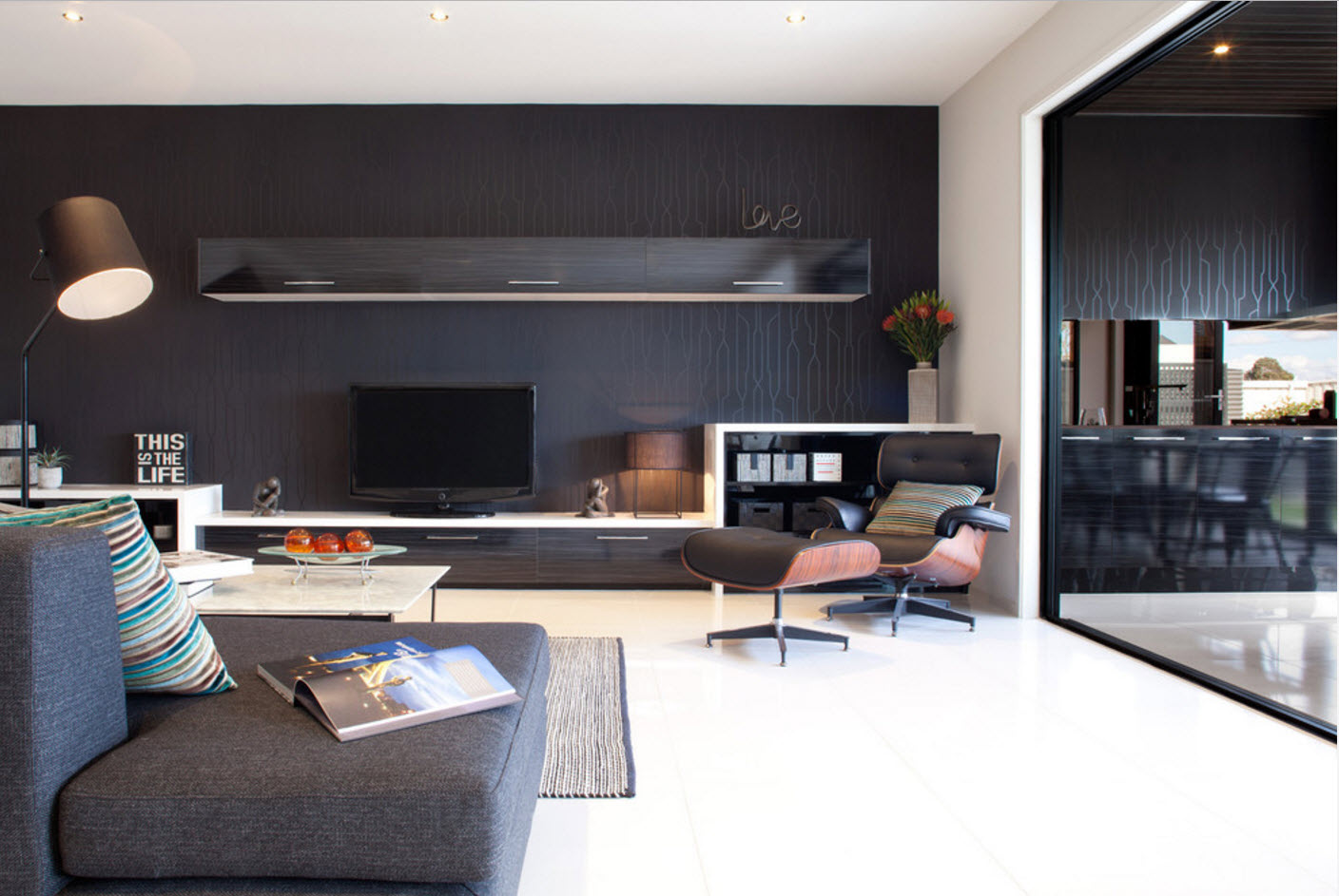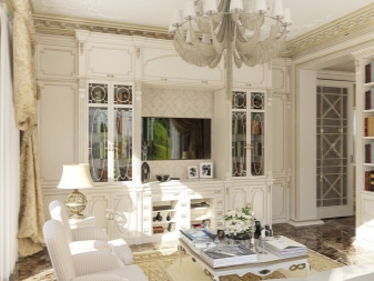 Der Trend der Moderne kann kurz als moderner Adel beschrieben werden. Innenräume in diesem Stil erscheinen nicht altmodisch, sehen aber dank der weichen Linien elegant und raffiniert aus. Wände für das Wohnzimmer werden auch Besonderheiten haben: