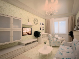 In einer kleinen Wohnung wird eine hohe Mauer unhandlich aussehen. Es ist besser, die Stile aufzugeben, die auf das Vorhandensein von schweren und festen Möbeln schließen lassen. Sie können auf die modularen Wände achten.