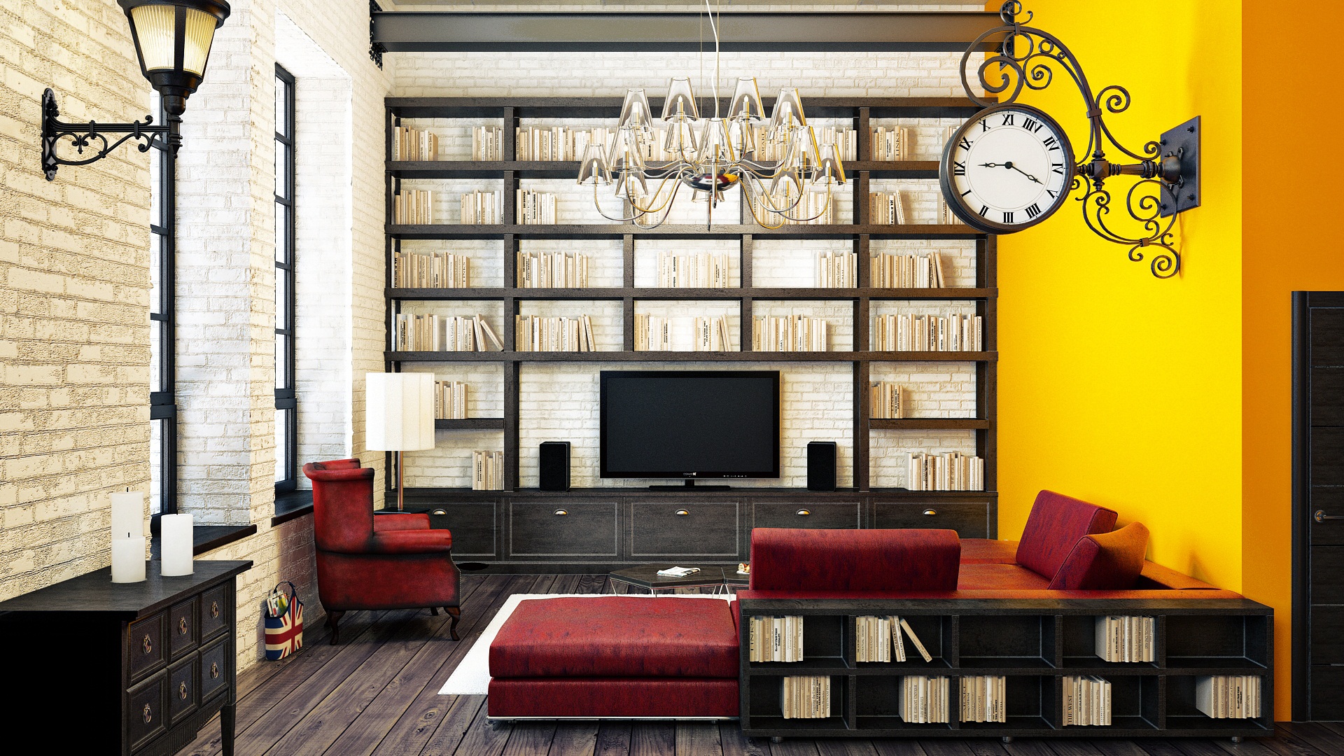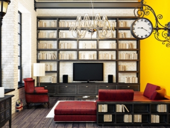 - die Idee eines Lofts selbst sieht keine große Anzahl von Schränken vor, so oft wird die klassische Wand durch offene Regale in Kombination mit mehreren Nachttischen ersetzt;