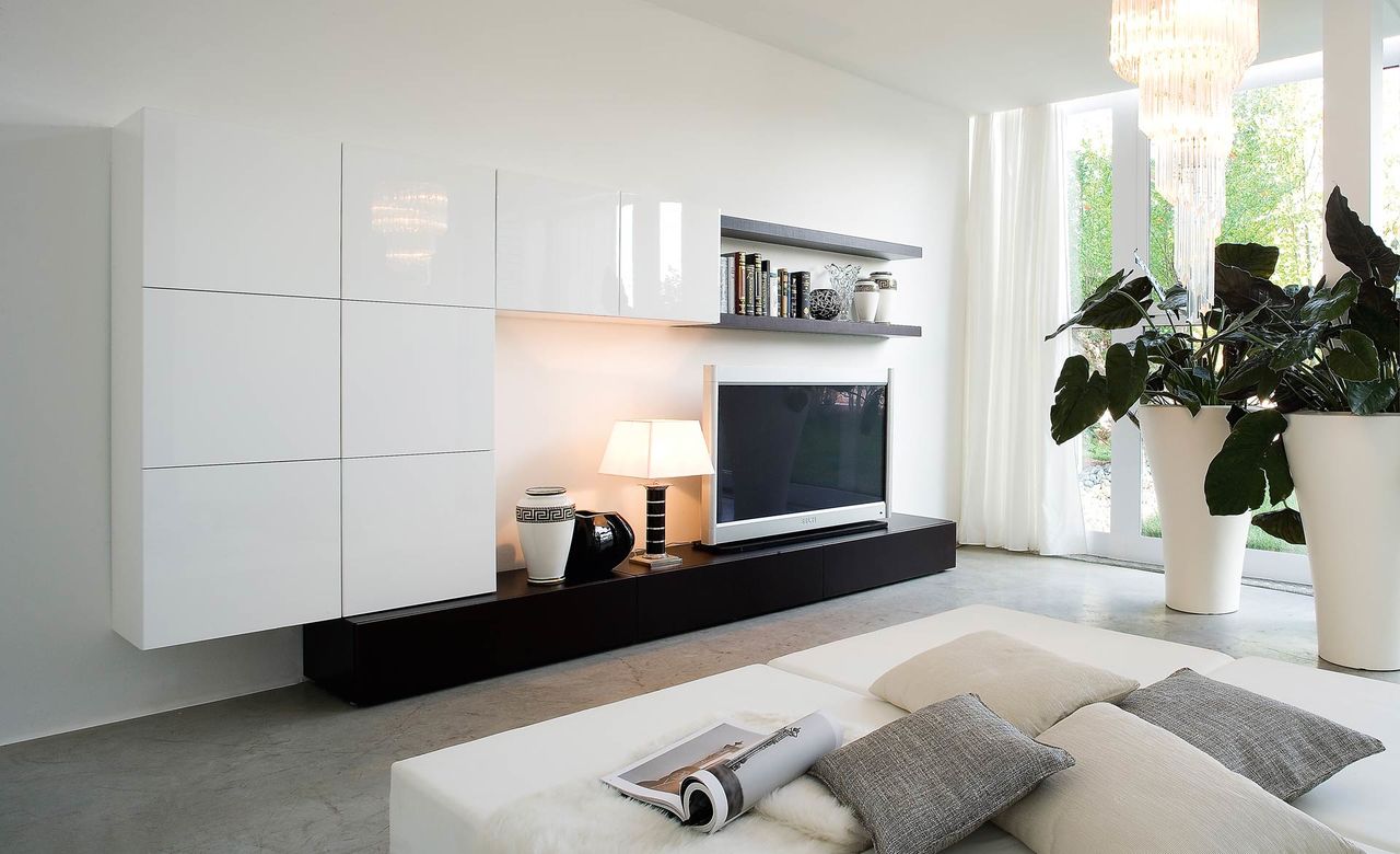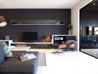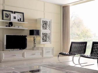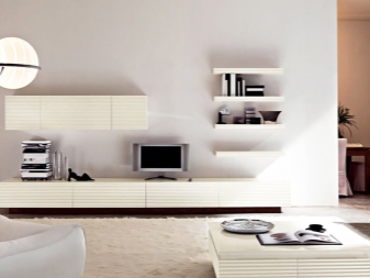 Wände mit vielen dekorativen Elementen erfordern eine aufwändige Wartung - jedes Detail muss rechtzeitig gereinigt werden, damit sich dort kein Staub ansammelt. Wenn also die Wohnungseigentümer keine Zeit für die Reinigung haben, ist es besser, Möbel mit glatten Fassaden im Stil des Minimalismus oder eines ähnlichen modernen Trends zu wählen - es ist viel einfacher, ihre Sauberkeit zu überwachen.