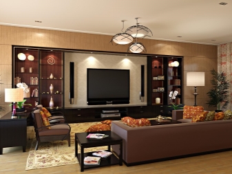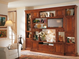Eines der Hauptelemente im Wohnzimmer ist eine Wand. Es kann ein Bezugspunkt sein, um den herum das Interieur gebaut wird: ein Sofa, Sessel werden ausgewählt und dekorative Elemente hinzugefügt. Es gibt Wände für das Wohnzimmer in verschiedenen Stilen, so dass Fans von Modetrends, Fans der historischen Atmosphäre und Ethno-Fans etwas für sich finden können.