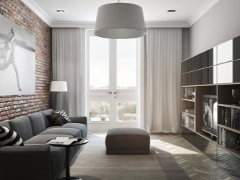 - Farben - dunkel, gedämpft - grau, braun, Ziegel, schwarz. Sie können die hellen Töne verdünnen, damit die Situation nicht zu düster und bedrückend aussieht.