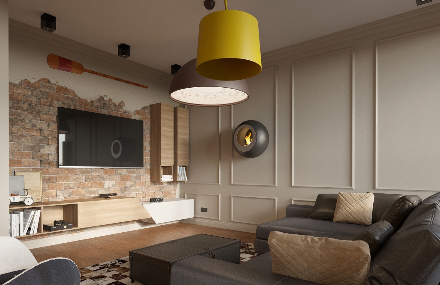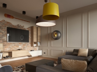Sie können das Loft kurz beschreiben: gelebter Dachboden.Dies ist ein Merkmal des Stils - der Raum sieht aus wie ein verlassenes Industriegebäude oder ein alter Dachboden, wo sich Leute niederließen. In dieser Inneneinrichtung ist einfach, prägnant, mit einem Hauch von Nachlässigkeit. Dies gilt auch für die Wand für die Halle: