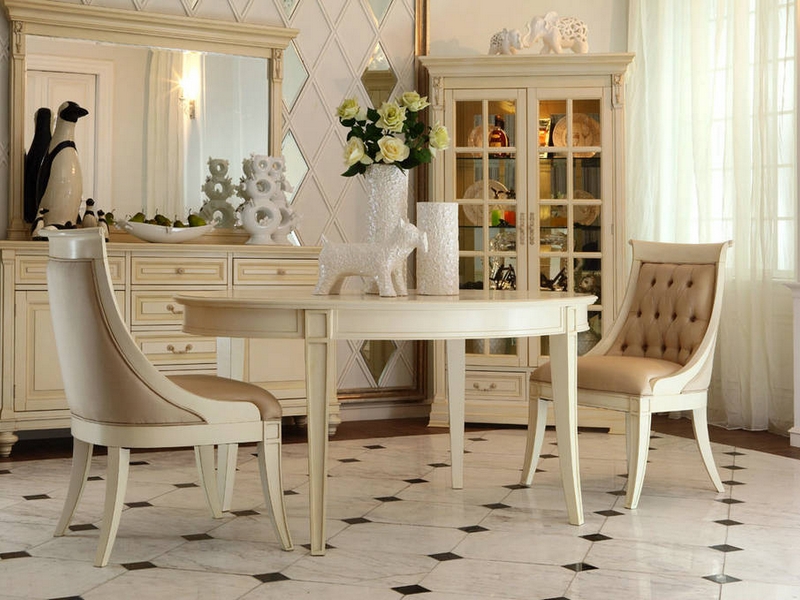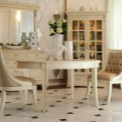 Dieses Möbelstück, besonders wenn es von beeindruckender Größe ist, wird normalerweise in einem geräumigen Esszimmer platziert. Es sieht sehr schön aus, eine große Familie kann sich darum kümmern. Es ist wünschenswert, mehrere identische Stühle, die mit Textilien gepolstert sind, zu einem solchen Tisch aufzuheben und mit einer Tischdecke in der Farbe dieser Polsterung zu bedecken.