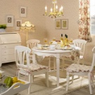 Stühle im Stil der "Provence" können nicht nur in der Nähe des Küchentisches stehen, sie sind auch im Wohnzimmer und auf der Veranda sehr geeignet. Stellen Sie in diesem Fall sicher, dass sich ihre Farben nicht vom Stil der Wohnung abheben. Vielleicht wäre es überflüssig zu erwähnen, dass die Stühle, wie alle anderen Möbel, einen Hauch von Antike und Vintage haben sollten.