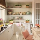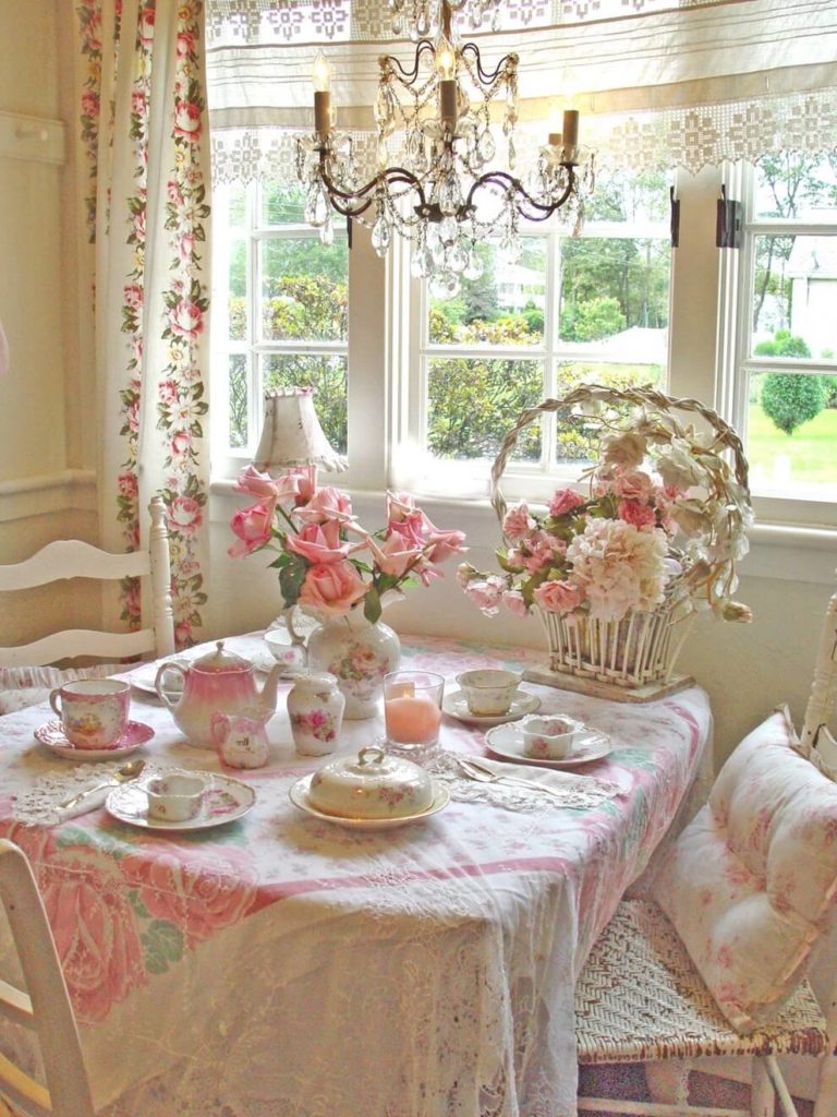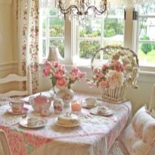 - Farbbereich. Dieser Stil zeichnet sich nur durch die sanftesten Pastelltöne aus. Oliv-, Himmel-, Ocker-, Pfirsich-, Rosa- und Weißfarben erlauben Ihnen, sie leicht zu kombinieren, weil sie perfekt miteinander kombiniert werden. Sie werden auch nicht unbedingt ein Möbel-Set kaufen, Sie können einfach mehrere Artikel in verschiedenen Farben kombinieren, aber ähnlich im Stil, und sie werden sehr harmonisch aussehen.