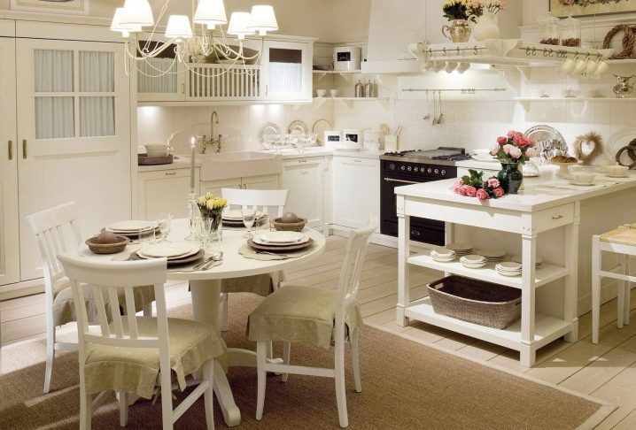Und vergessen Sie nicht die zusätzliche Einrichtung. Sträuße von Wildblumen in Vasen, Porzellanfiguren, Tischdecken und Servietten mit Stickereien - all dies passt perfekt in das Interieur der "Provence" und wird zum "Sahnehäubchen" im richtigen Design der Wohnung.