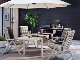 - Das gleiche Modell auf der Terrasse in einem klassischen Stil wird Kürze und Eleganz hinzufügen.