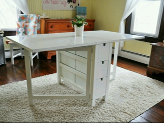 Das Tischbuch wurde von unseren Mitbürgern auch in der sowjetischen Vergangenheit geliebt, da es ein tolles Möbelstück für kleine Wohnungen war, die in den üblichen Zeiten fast keinen Platz nahmen, und in den Ferien und während eines Festes konnte man ziemlich viele Gäste unterbringen. Ikea konnte diesen Entwurf nicht ignorieren, er hat eine Anzahl von Modellen dieses Samples veröffentlicht. Ikea Bücherregale haben mehrere Vorteile: