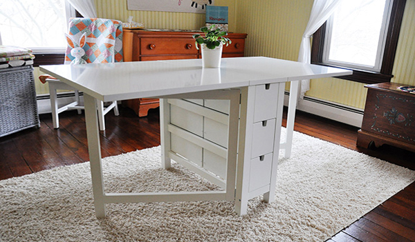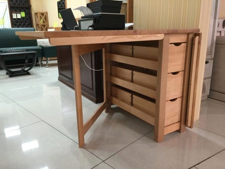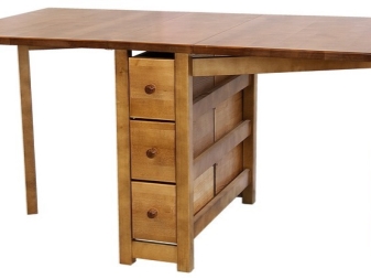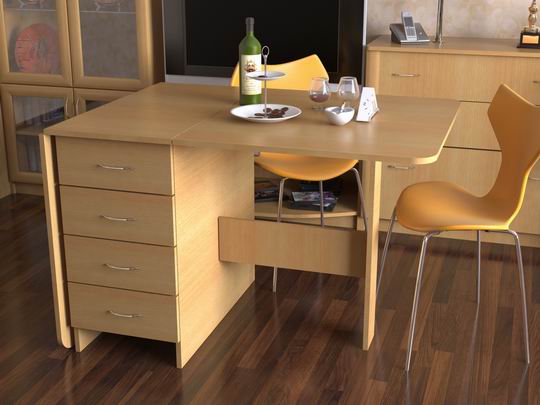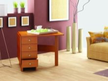 - Mit Schubladen ausgestattete Tischschubladen können auch im zusammengeklappten Zustand als funktioneller Nachttisch verwendet werden. Die Anzahl der Boxen kann von einem bis zu 5 Stück variieren. Solch ein Produkt kann mit gleichem Erfolg sowohl im Küchenstudio (in dessen Schubladen die Gastgeberin Küchengeräte oder andere wichtige Gegenstände aufbewahrt), als auch im Wohnzimmer verwendet werden, besonders wenn die Gastgeberin an irgendeiner Art von Handarbeit interessiert ist (es können Fäden gelagert werden) Stoff, Papier und mehr).