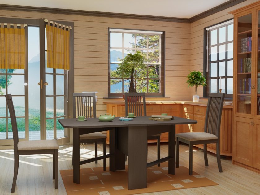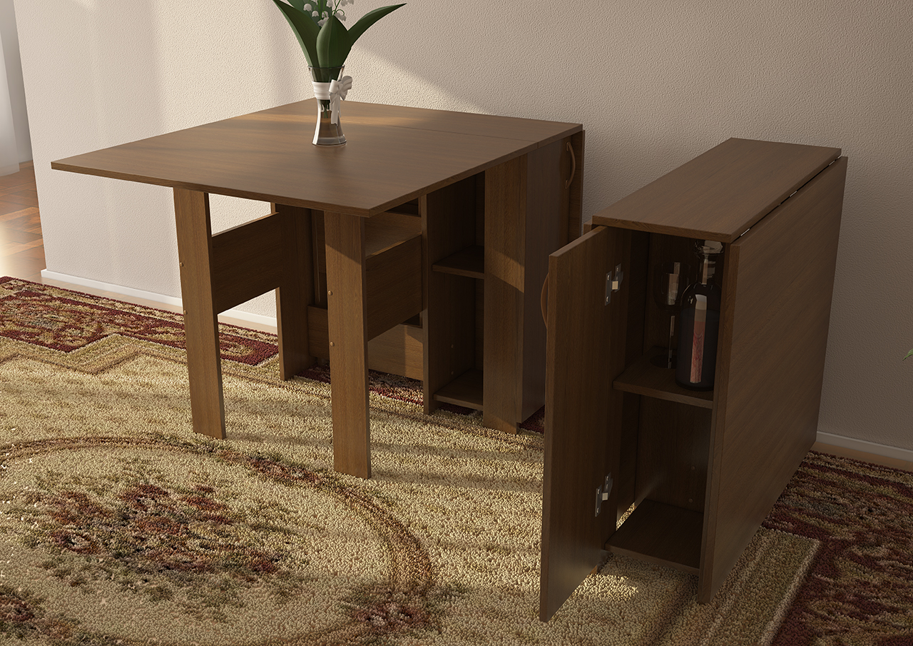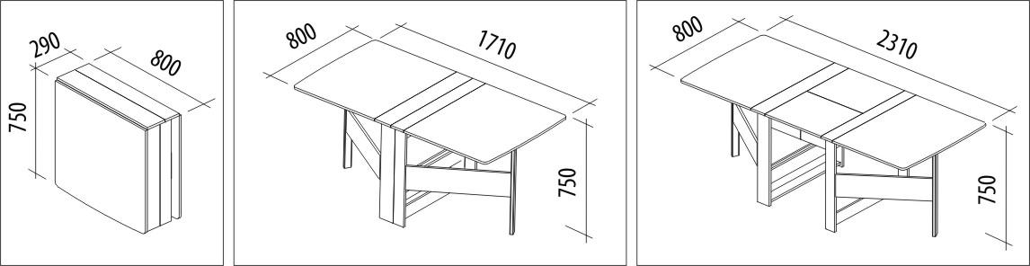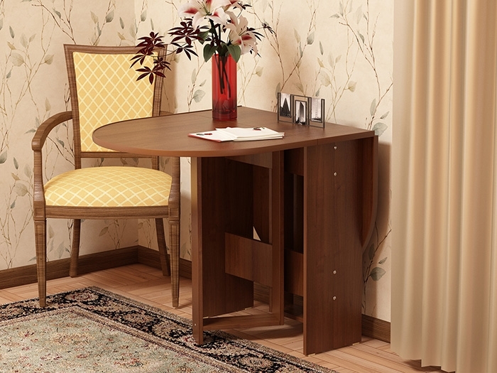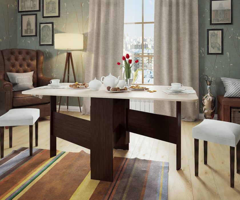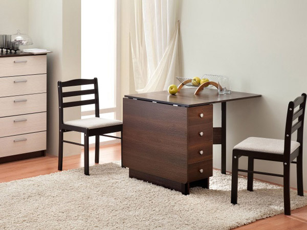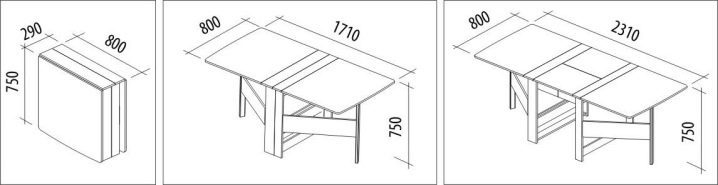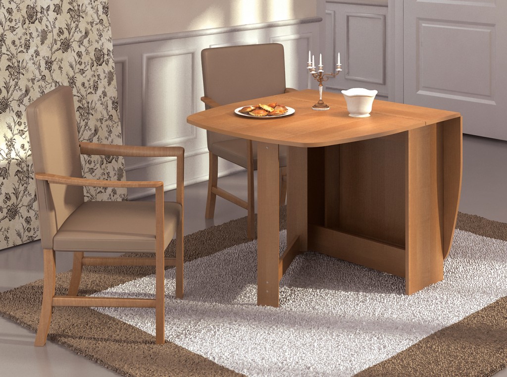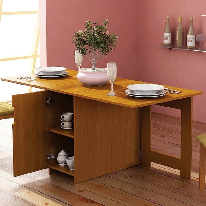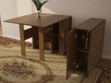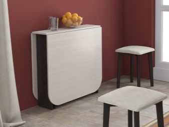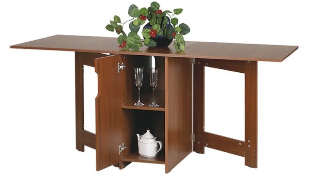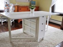 Im zusammengeklappten Zustand beansprucht dieses kompakte Möbelstück nur wenig Platz. Aber die Wahl auf einer bestimmten Variante haltend, vergessen Sie nicht, die Größen solcher Tabelle in der ausgebreiteten Art zu schätzen.