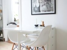Tische, Bücher, in einer hellen Farbpalette gemacht, werden den freien Raum visuell vergrößern und ihn mit Licht füllen. Daher sind helle Farben eine ausgezeichnete Lösung für einen kleinen Raum, zum Beispiel für eine Küche, die sich in bescheidenen Dimensionen unterscheidet, oder für ein Kinderzimmer. Dieses Produkt verleiht dem Interieur ein Gefühl von Leichtigkeit und Frische.Darüber hinaus harmoniert die helle oder weiße Farbe perfekt mit einer Vielzahl von Tönen, mit denen Boden, Decke und Wände dekoriert werden.