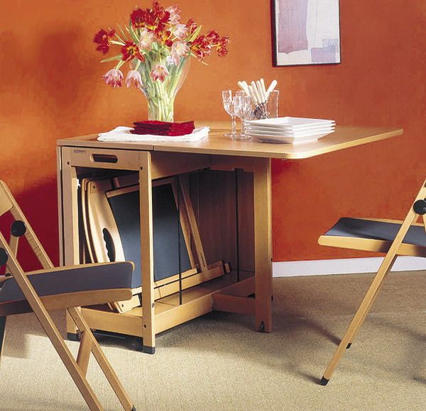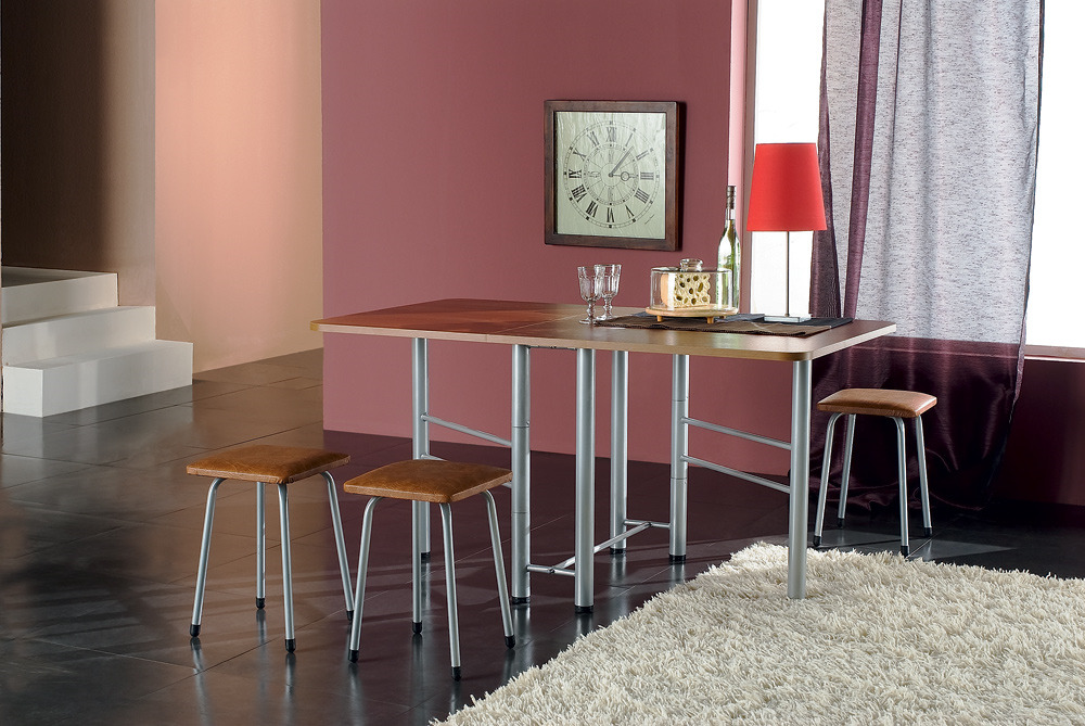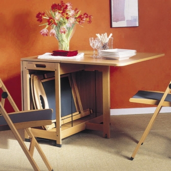 Dies gilt auch für Tabellen. Egal in welchem Raum sich das Produkt befindet - in einem Raum, Wohnzimmer, Küche-Studio, in einem Büro oder Kinderzimmer - nicht jeder kann sich einen großen Tisch leisten. Daher ist es nicht verwunderlich, dass Falt- und Faltmodelle von Umformtischen sehr beliebt sind. Im zusammengefalteten Zustand sind sie kompakt und im zerlegten Zustand in der Lage leicht auch eine große Firma unterbringen, die dich unerwartet besuchte.