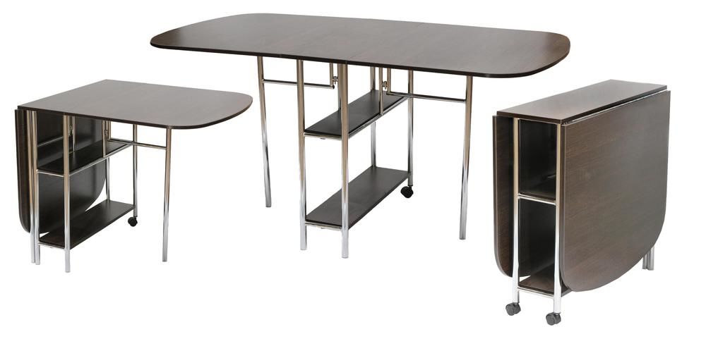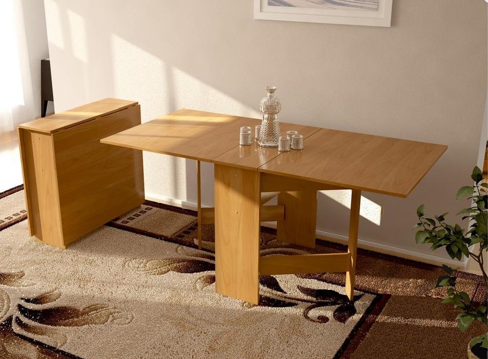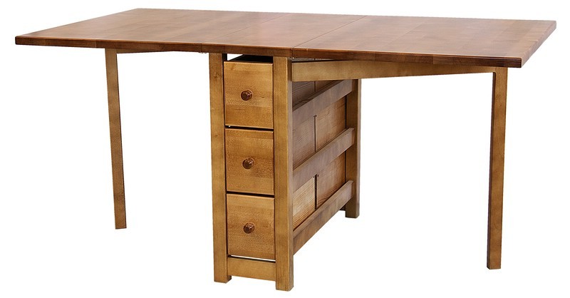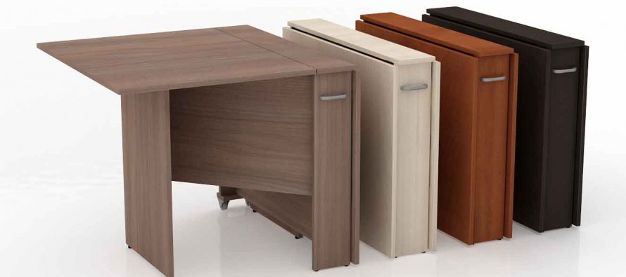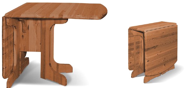Diese Tische sind sehr geschätzt, da sie kompakt gefaltet sind, aber die Fläche der Tischplatte nimmt leicht zu, wenn Sie ein oder zwei Paneele eines solchen Tischbuchs öffnen.