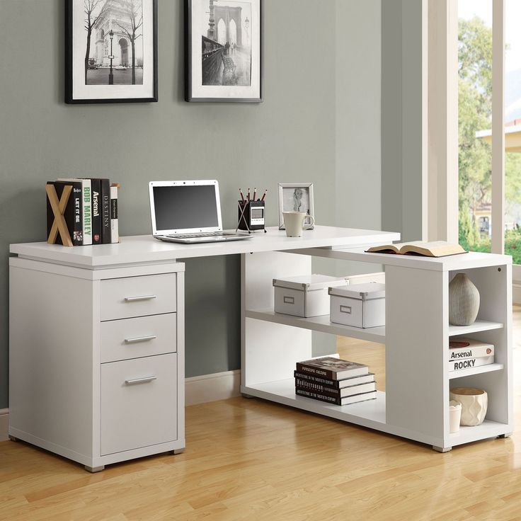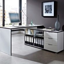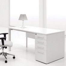Ein weißer Computerschreibtisch ist eine vielseitige Option für die Anordnung der Arbeitsbereiche oder Büroräume, daher viele Hersteller von Schrankmöbeln (Vitra, Kompass, Akma und andere) bieten verschiedene Modelle an. Sie verwenden unterschiedliche Materialien, Designs, Formen und Größen.