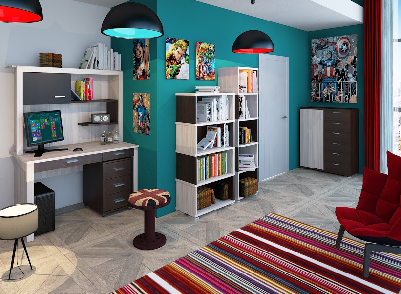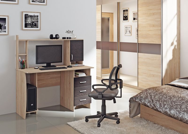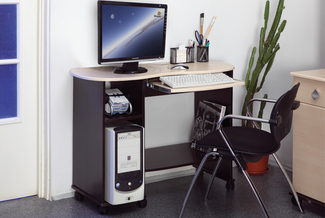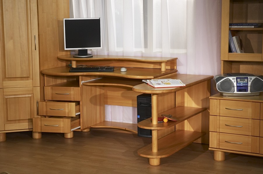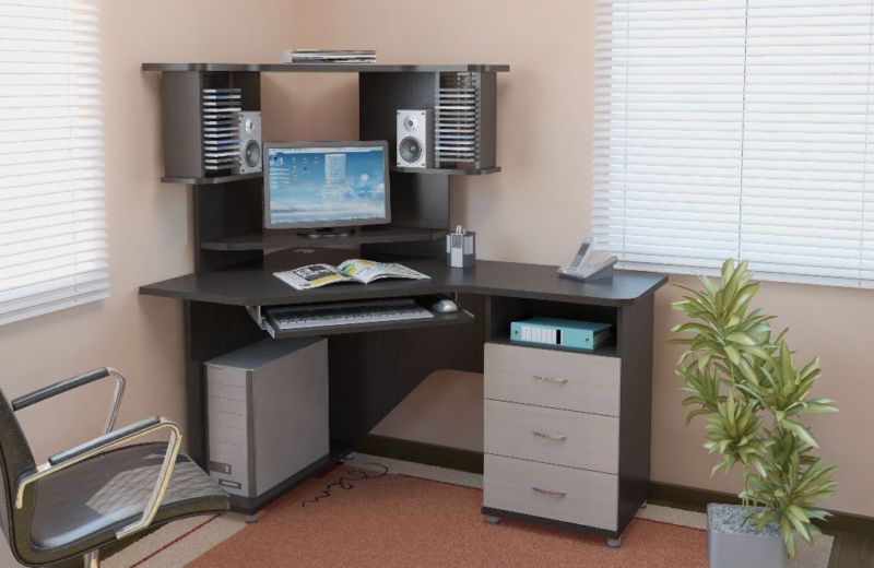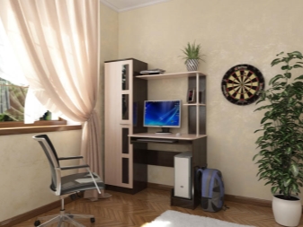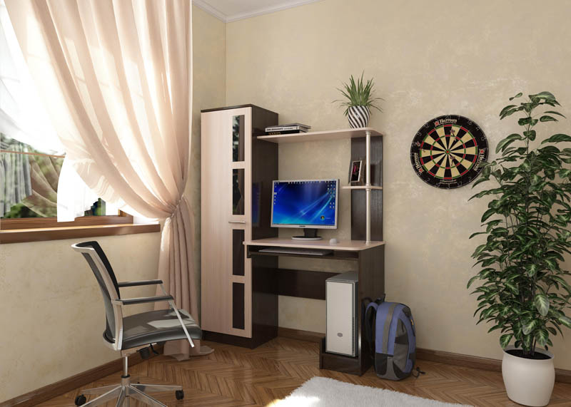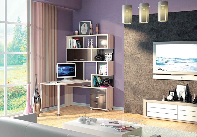Wie bereits erwähnt, müssen Sie sich bei der Anschaffung eines Computertisches auf die Funktionen des Interieurs konzentrieren.Besonderes Augenmerk sollte auf die Ausstattung und Farbe der Möbel gelegt werden, die bereits im Raum vorhanden sind. Ein wichtiges Kriterium ist die Verfügbarkeit von freiem Raum im Raum. Dies liegt daran, dass einige Farbtöne die Fläche optisch vergrößern oder reduzieren können.