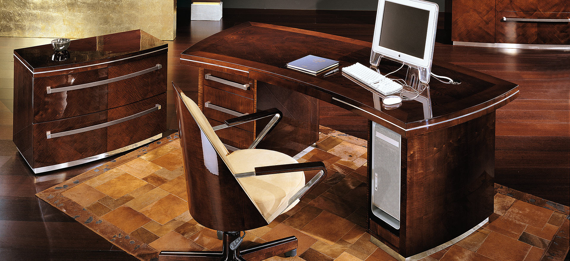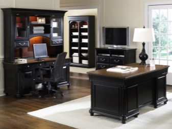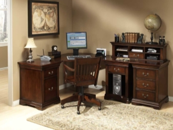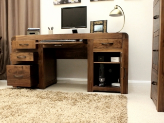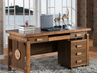 - Walnuss Möbel Es gilt als extrem groß und schwer, ein Schreibtisch für die Organisation eines Arbeitsplatzes aus einem solchen Material wird sehr teuer und elitär aussehen, da die Walnuss oft mit Schnitzereien verziert ist.