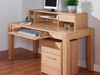 - Tische aus Naturholz - das Vergnügen ist nicht billig, also, wenn Sie sich entscheiden, einen multifunktionalen Tisch mit einer großen Anzahl von Schubladen und Regalen für Inventar zu kaufen, bereit sein, Geld auszugeben.