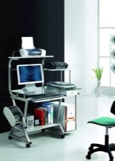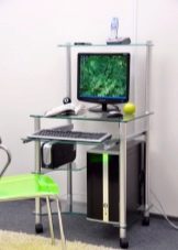 Ein weiterer Modelltransformator - eine zusammengesetzte Tabelle. Es besteht in der Regel aus mehreren Etagen aus Leichtbauwerkstoffen. Tiers enthalten einen Ständer für den Monitor, Tischplatte, Regal für die Tastatur, Regal für die Systemeinheit. Alle diese Ebenen können Sie in der Höhe variieren, die am besten für Sie auswählen. Alle diese Elemente liegen sehr kompakt unter einander und benötigen daher nur wenig Platz.