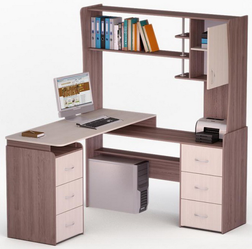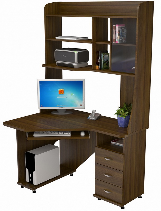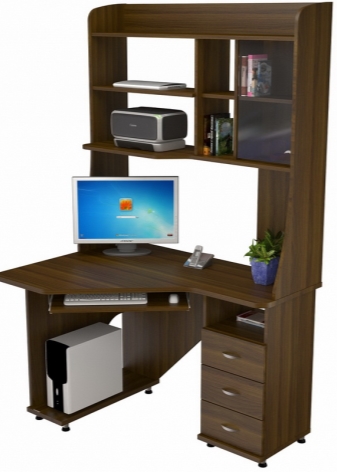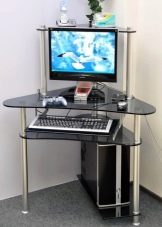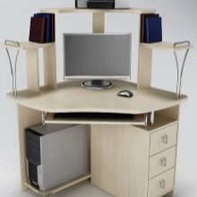 Diese Tabellen enthalten alle Computerausrüstung vollständig, sowie Dokumente, Schreibmaterialien und viele andere notwendige Dinge, die in den Kisten einer solchen Ecke gespeichert werden können. Seine Eigenschaft ist die geringe Größe der Tischplatte. Die geringe Länge der Arbeitsfläche ist in der Regel nicht zum Schreiben bestimmt, und daher ist es nicht sehr bequem, an einen solchen Tisch zu schreiben. Meistens sind solche Modelle durch das Vorhandensein einer schmalen Tischplatte gekennzeichnet.