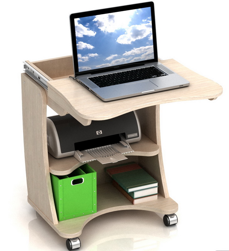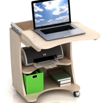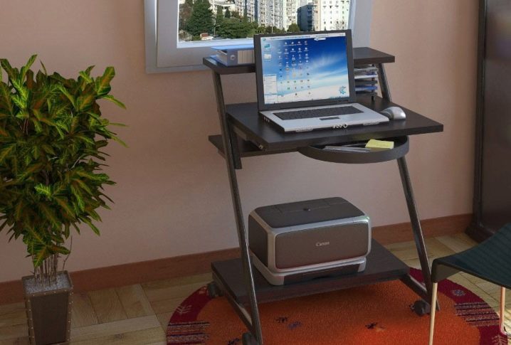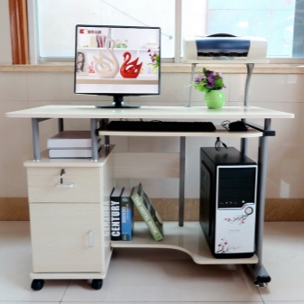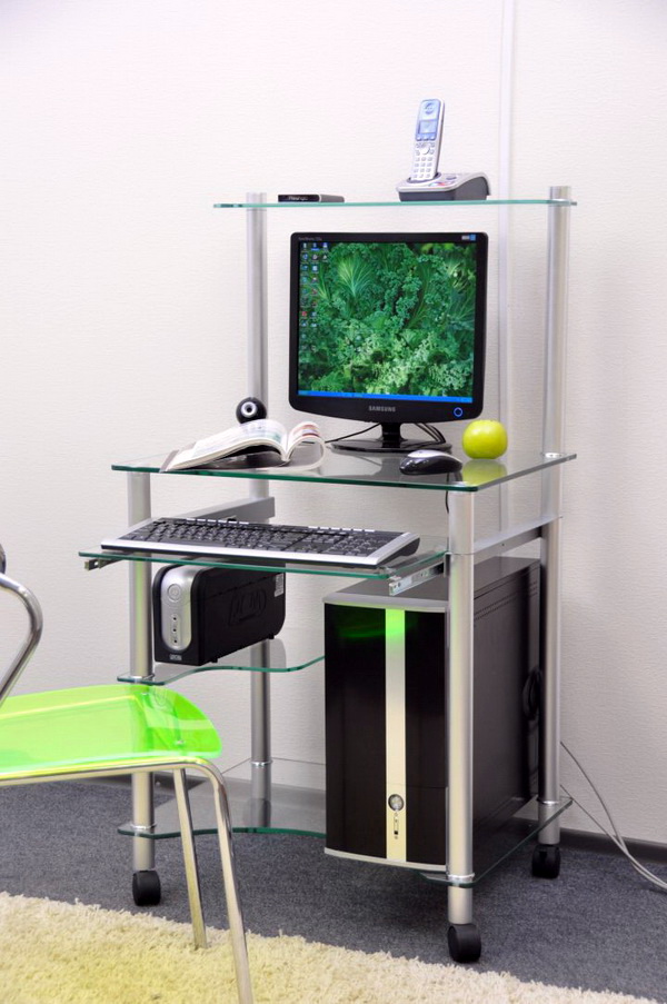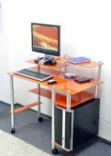 Dies ist ein praktischer Tisch auf Rädern, der kleine, aber stabile Rollen für seine Bewegung im Raum hat. Solche mobilen Designs sind sehr zuverlässig. Sie können sich nicht sorgen, dass während der Bewegung des Designs Ihres Computers fallen wird. So können Sie jederzeit leicht eine Permutation vornehmen oder Ihren Arbeitsplatz von einem Raum in einen anderen verlegen, so dass Sie niemand stört. Solche Modelle haben auch ein zusätzliches Fach für die Systemeinheit, so dass Sie nicht alle Elemente des Computers entfernen und separat übertragen müssen, Sie können sie zusammen auf einem solchen Tisch tragen.