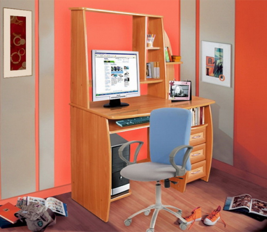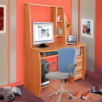 Der Tisch sollte gerade und ohne verschiedene Defekte sein, da Sie auf diese Weise den Monitor nicht gleichmäßig positionieren können, was die Arbeit beeinträchtigt. Tischdekoration ist auch von großer Bedeutung. Wenn Sie ein Produkt in einem Kindergarten kaufen, ist es wichtig zu überlegen, ob es für einen Jungen oder ein Mädchen bestimmt ist. Mädchen kaufen leichtere Arbeitsecken und Jungen sind heller oder dunkler.